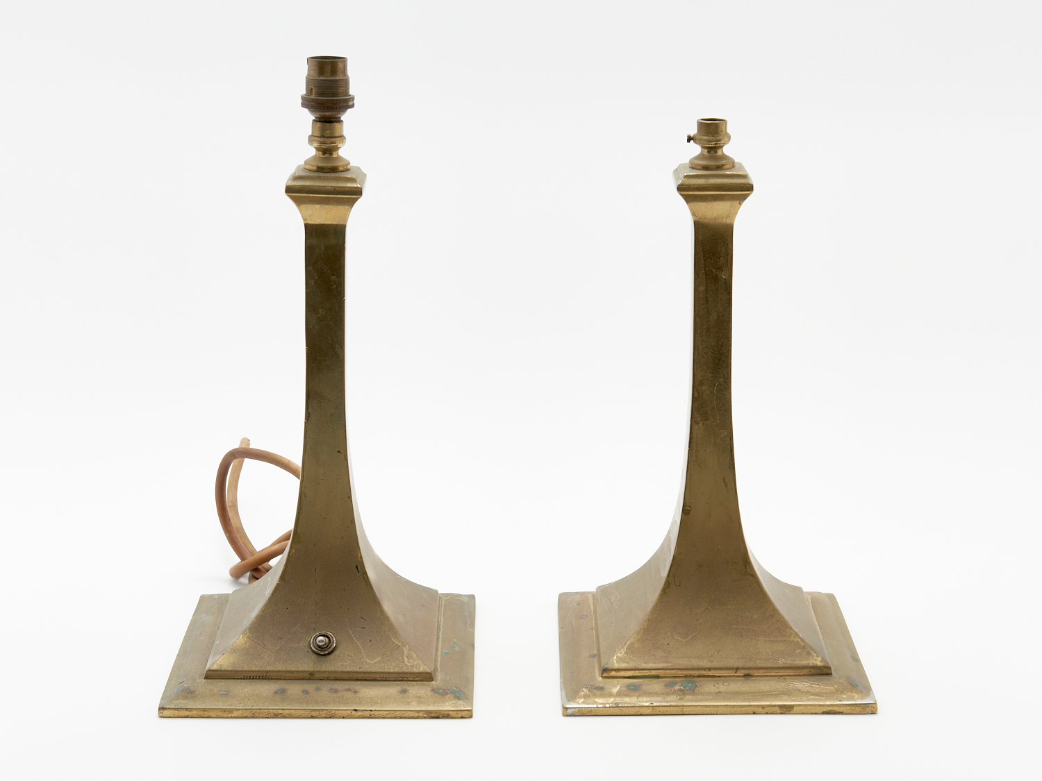 A PAIR OF EARLY 20th CENTURY ENGLISH 'REVO' BRONZE LAMP BASES H.34CM (NOT WIIRED), LEONARD JOEL DELIVERY SIZE: MEDIUM