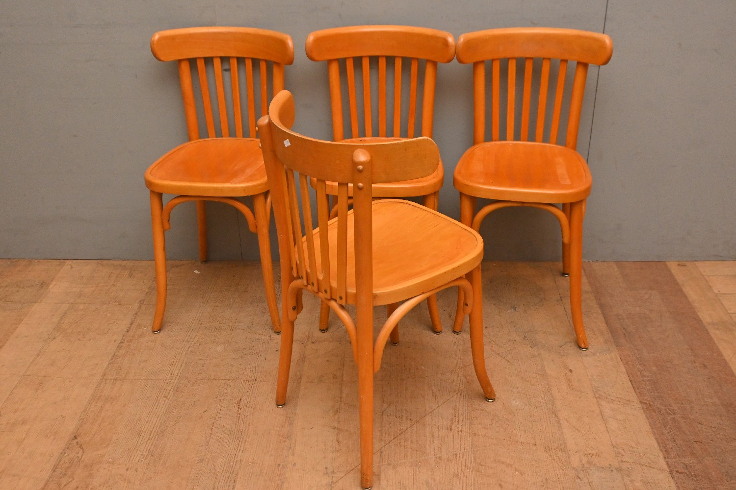 A SET OF FOUR AUSTRALIAN BENTWOOD DINING CHAIRS (A/F) (79H X 42W X 38D CM) (LEONARD JOEL DELIVERY SIZE: LARGE)
