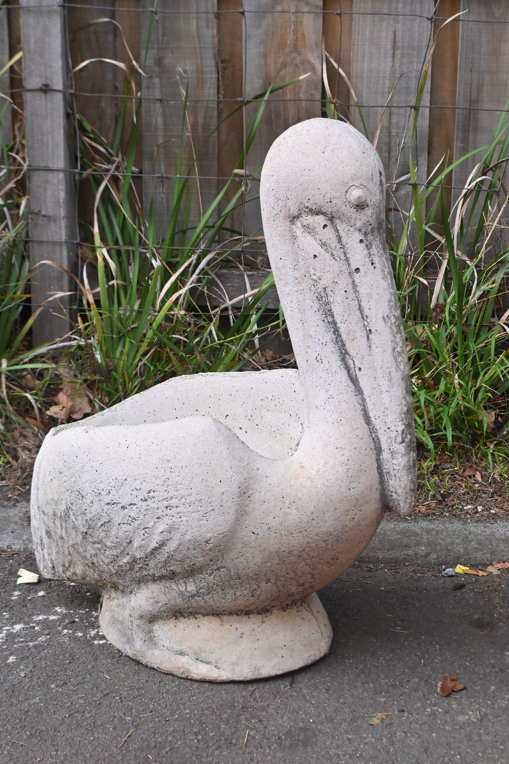A RETRO CONCRETE PELICAN FORM PLANTER (A/F) (72H X 37W X 58D CM) (PLEASE NOTE THIS HEAVY ITEM MUST BE REMOVED BY CARRIERS AT THE CUSTOMER'S EXPENSE. LEONARD JOEL STAFF CANNOT ASSIST CARRYING THIS ITEM) (LARGE ITEM)