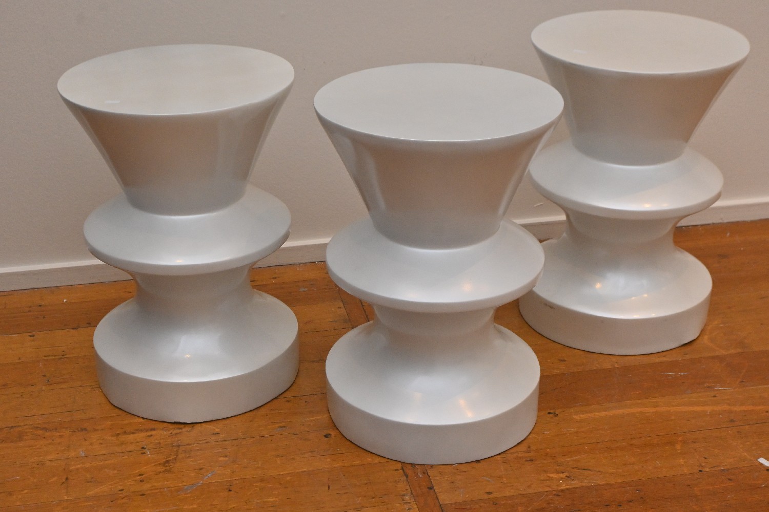 THREE DESIGNER SCULPTURAL WHITE SIDETABLE/STOOLS (85H X 38DIA CM) (LEONARD JOEL DELIVERY SIZE: X-LARGE)