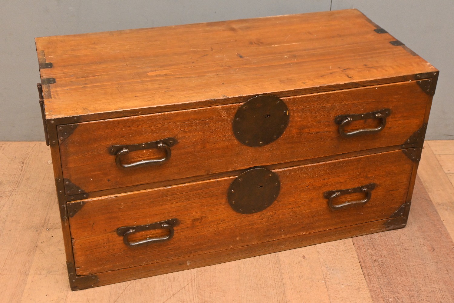 A LATE 19th / EARLY 20th CENTURY JAPANESE TANSU, WITH IRON FITTINGS  (A/F) (50H X 93W X 45D CM) (LEONARD JOEL DELIVERY SIZE: X-LARGE)
