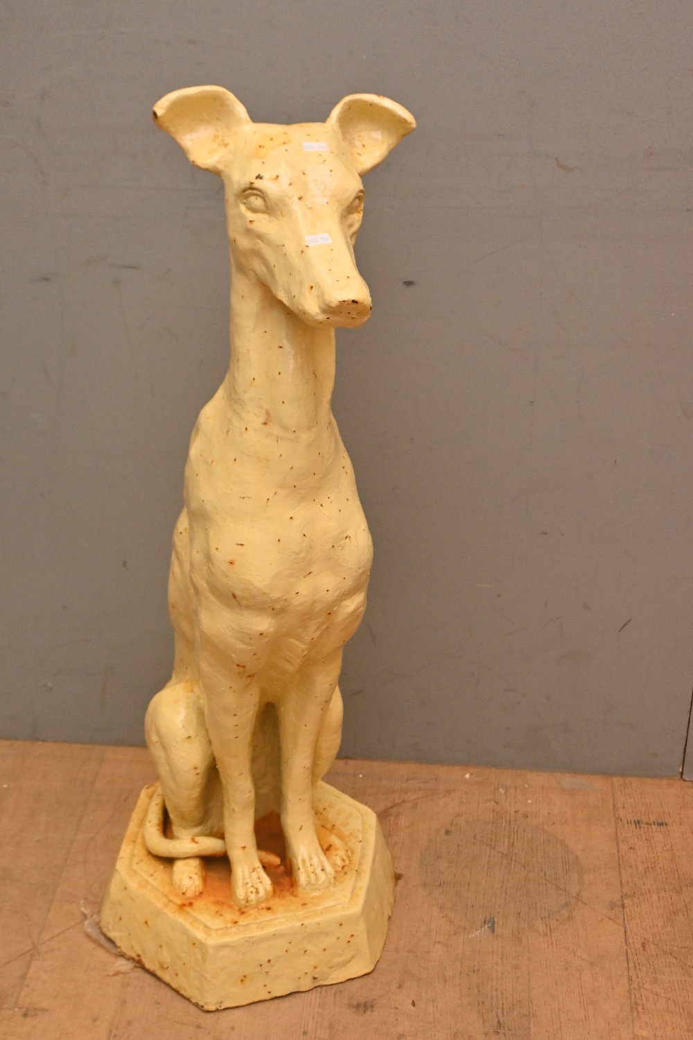 A CAST IRON GREYHOUND (93H X 36W X 36D CM) (PLEASE NOTE THIS HEAVY ITEM MUST BE REMOVED BY CARRIERS AT THE CUSTOMER'S EXPENSE. LEONARD JOEL STAFF CANNOT ASSIST CARRYING THIS ITEM) (LARGE ITEM)