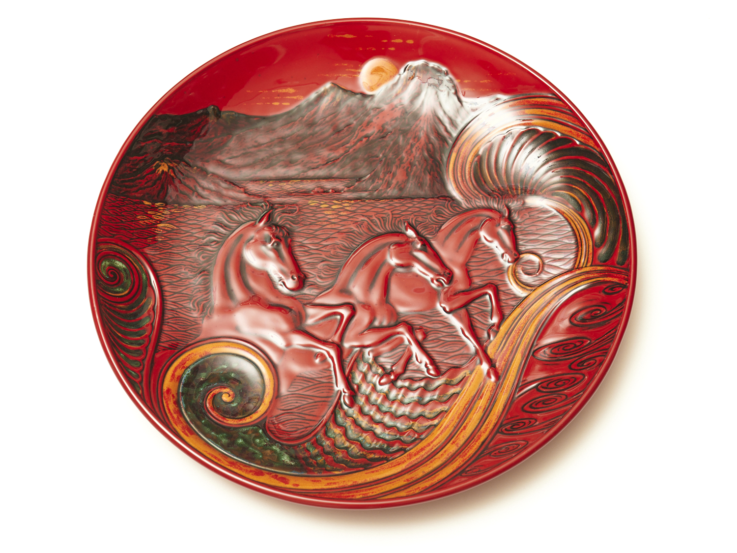 A ROYAL DOULTON BURSLEM ARTWARES FLAMBÉ QINGDAO CHARGER WITH ORIGINAL BOX, DIA.34.5CM, LEONARD JOEL DELIVERY SIZE: SMALL