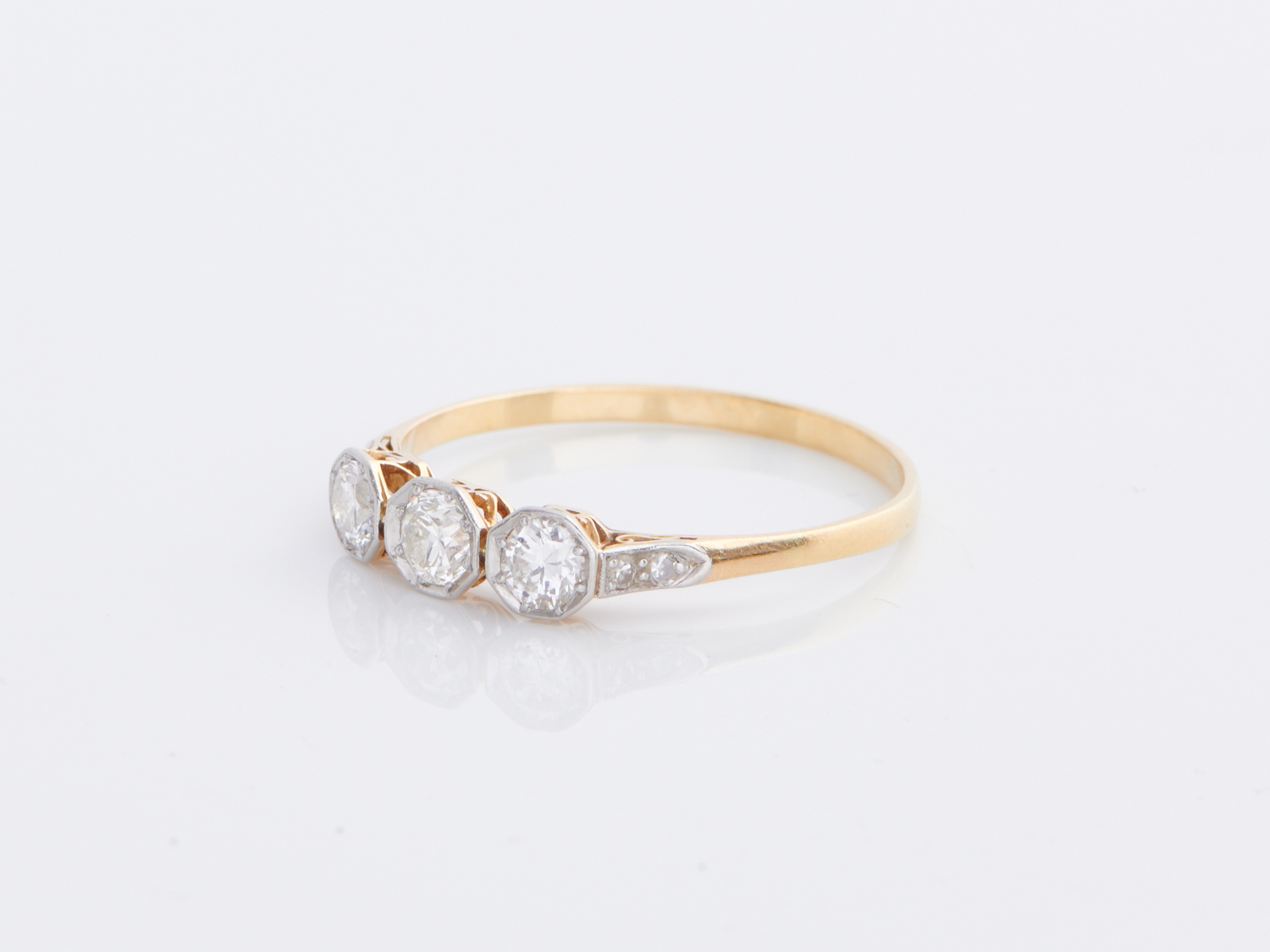 A VINTAGE HANDMADE DIAMOND RING IN GOLD AND PLATINUM, THE DIAMOND WEIGHING APPROXIMATELY 0.70CTS, G, VS, WEIGHT 2.42GMS