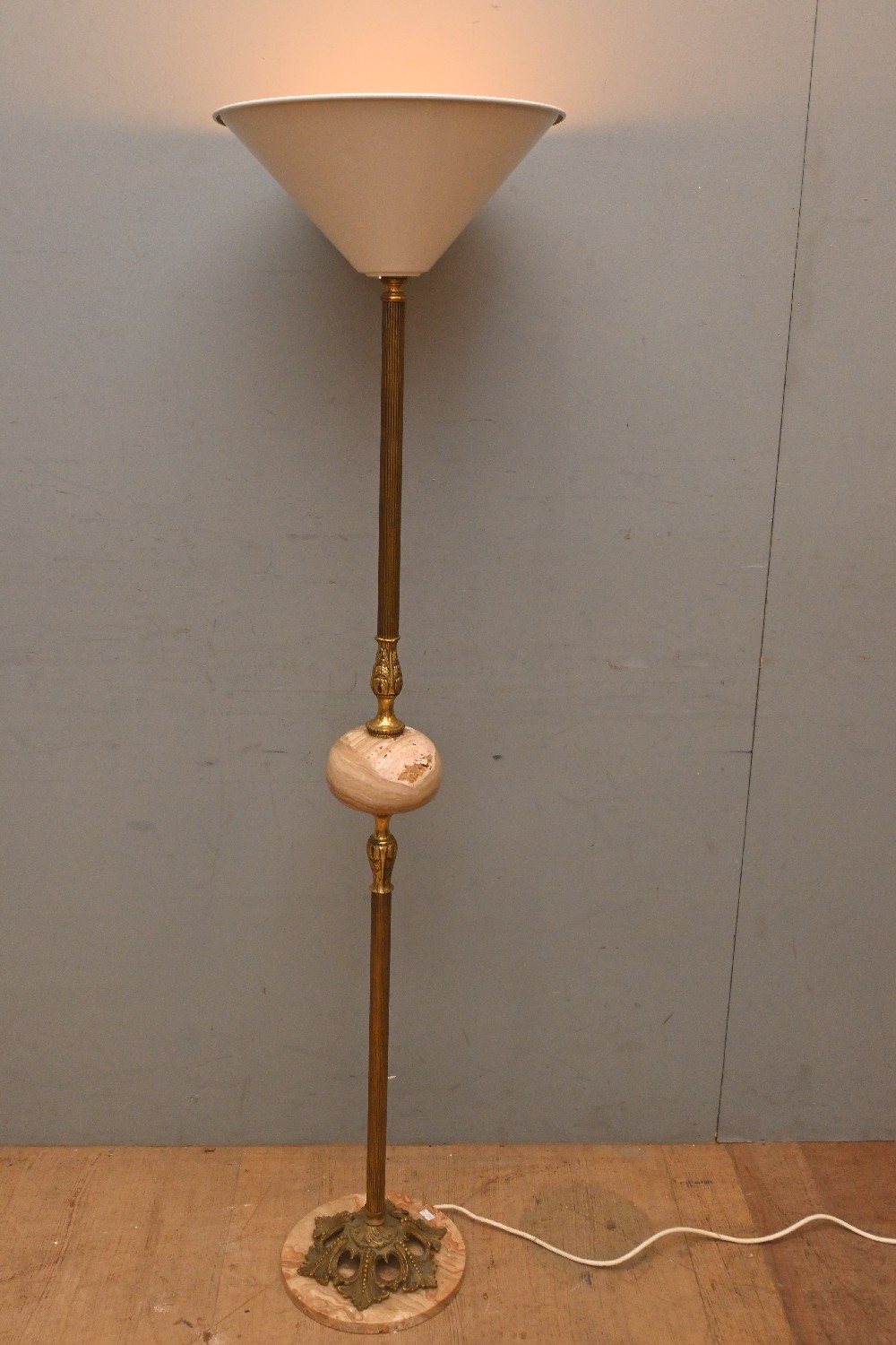 A BRASS AND MARBLE EFFECT STANDARD LAMP (146H X 37D CM) (LEONARD JOEL DELIVERY SIZE: LARGE)