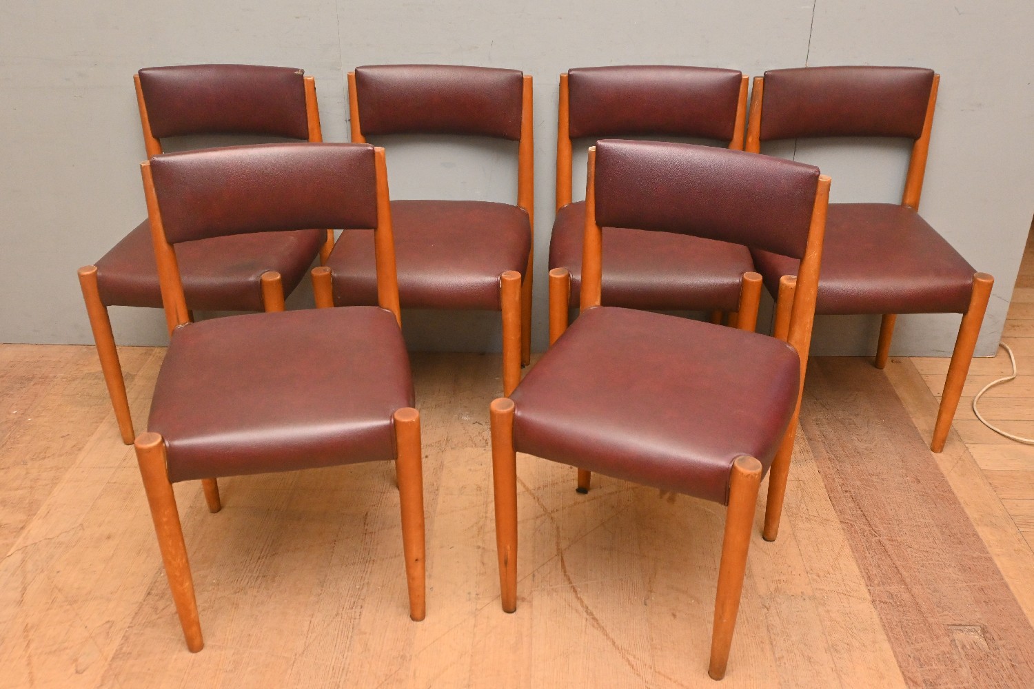 A SET OF SIX MID-CENTURY STYLE DINING CHAIRS (A/F) (80H X 46W X 45D CM) (LEONARD JOEL DELIVERY SIZE: X-LARGE)