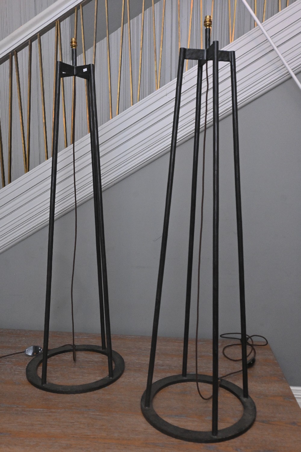A PAIR OF WROUGHT IRON STANDARD LAMPS (162H X 51DIA CM) (PLEASE NOTE THIS HEAVY ITEM MUST BE REMOVED BY CARRIERS AT THE CUSTOMER'S EXPENSE. LEONARD JOEL STAFF CANNOT ASSIST CARRYING THIS ITEM) (LARGE ITEM)