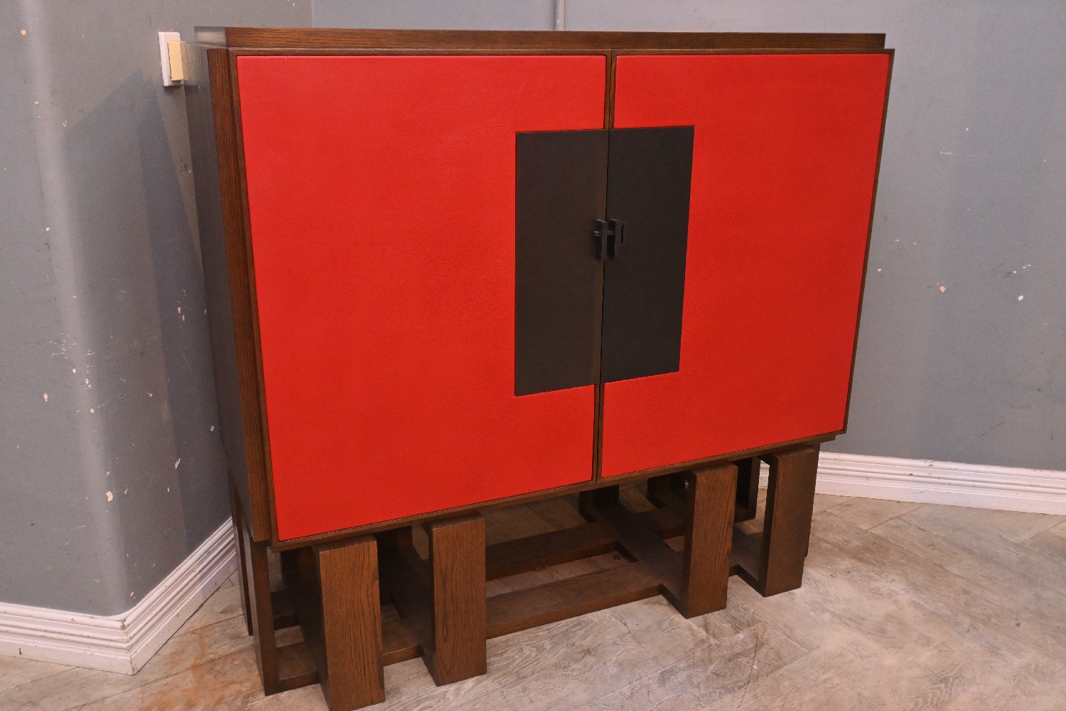 AN OAK COCKTAIL CABINET, DESIGNED BY STUART RATTLE FOR MORTICE AND TENON (141H X 150W X 60D CM) (PLEASE NOTE THIS HEAVY ITEM MUST BE REMOVED BY A MINIMUM OF FOUR CARRIERS AT THE CUSTOMER'S EXPENSE. LEONARD JOEL STAFF WILL NOT ASSIST CARRYING THIS ITEM) (LARGE ITEM)