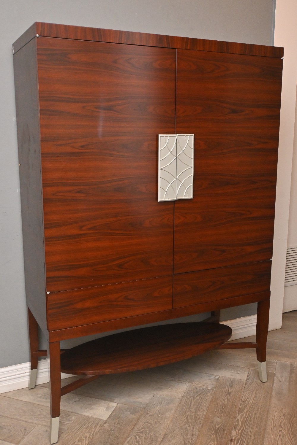 A ROSEWOOD-VENEERED COCKTAIL CABINET, DESIGNED BY STUART RATTLE FOR MORTICE AND TENON (181H X 122W X 51D CM) (THIS HEAVY ITEM MUST BE REMOVED BY CARRIERS AT THE CUSTOMER'S EXPENSE. LEONARD JOEL STAFF WILL NOT ASSIST CARRYING THIS ITEM) (LARGE ITEM)