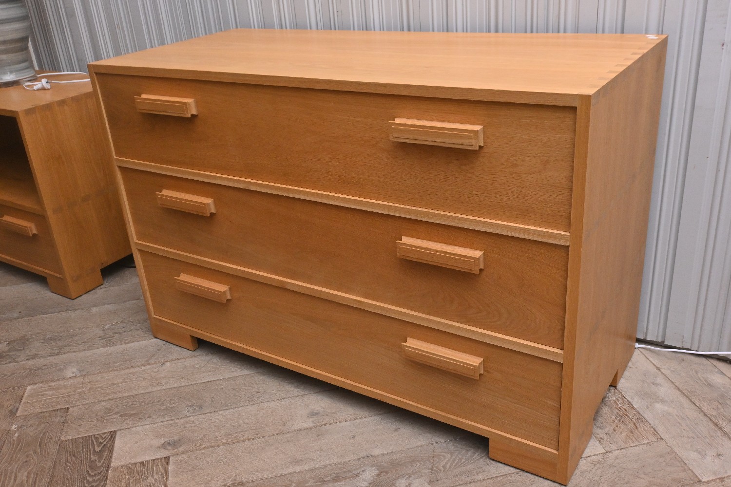 AN OAK CHEST OF DRAWERS, DESIGNED BY STUART RATTLE FOR MORTICE AND TENON (91H X 140W X 60D CM) (PLEASE NOTE THIS HEAVY ITEM MUST BE REMOVED BY CARRIERS AT THE CUSTOMER'S EXPENSE. LEONARD JOEL STAFF CANNOT ASSIST CARRYING THIS ITEM) (LARGE ITEM)