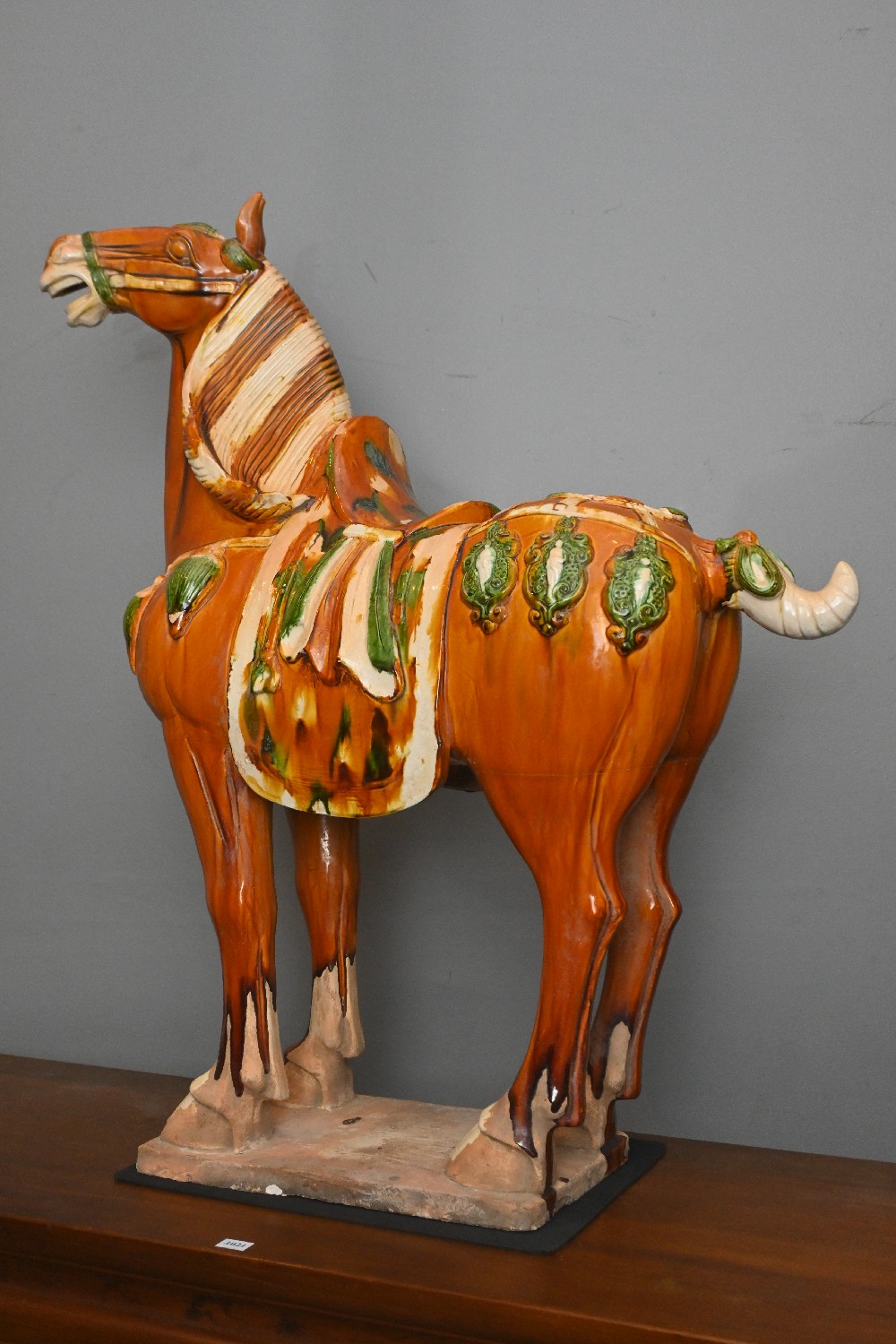 A TANG-STYLE SANCAI-GLAZED CERAMIC FIGURE OF A HORSE (87H X 70W X 30D CM) (LEONARD JOEL DELIVERY SIZE: LARGE)