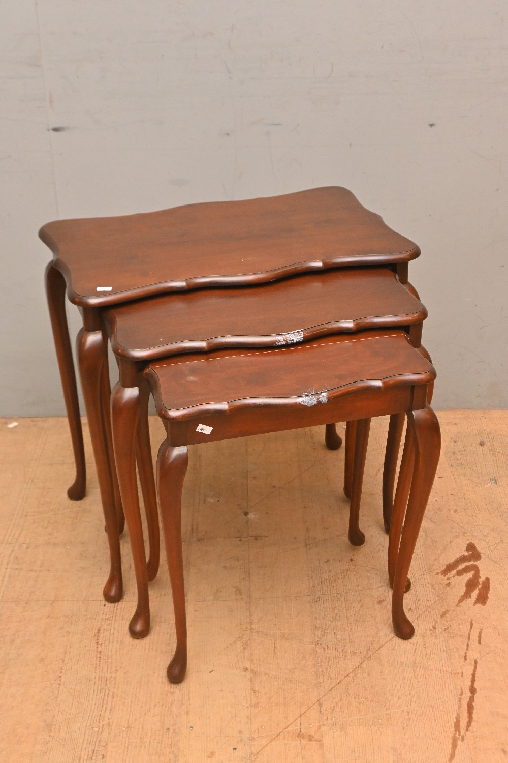 A NEST OF TABLES ON CABRIOLE LEGS (A/F) (58H X 58W X 36D CM) (LEONARD JOEL DELIVERY SIZE: LARGE)