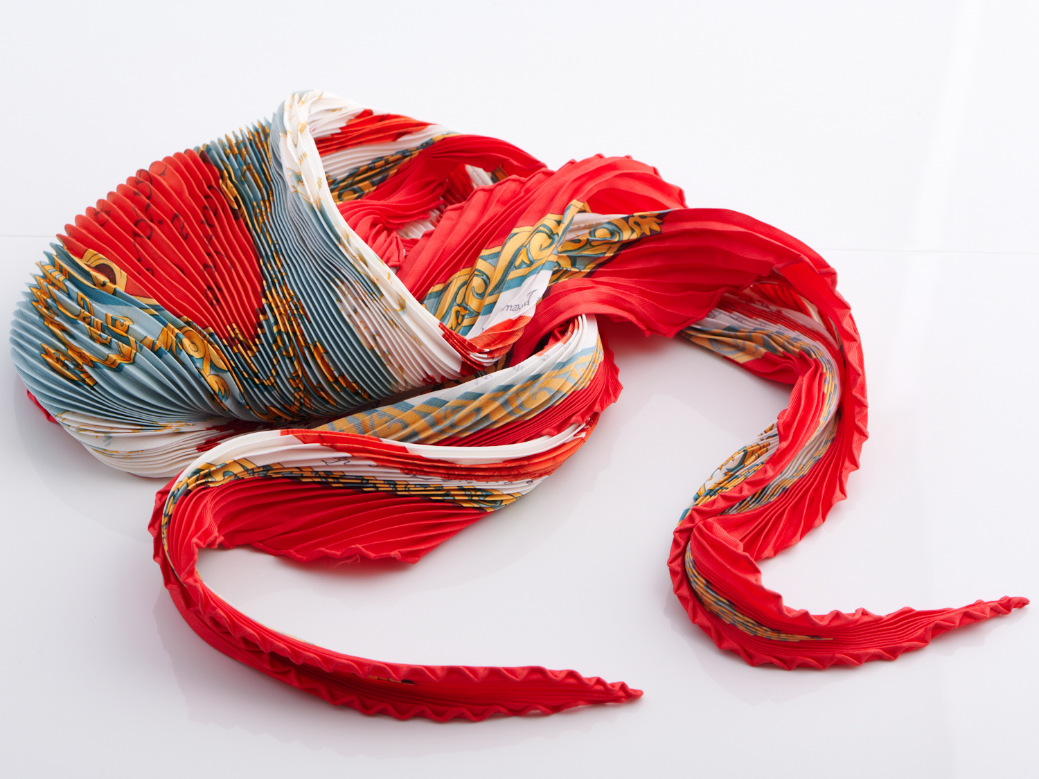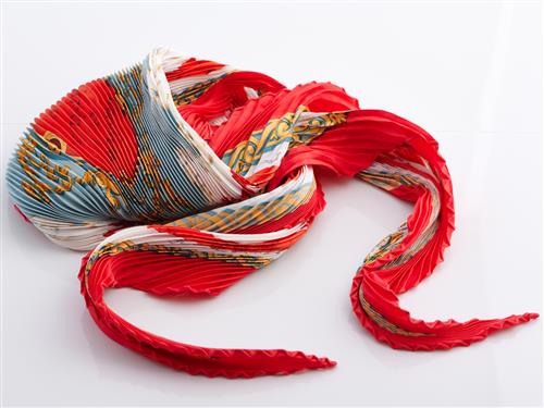 HERMÈS, A SILK PLISSÉ CARRÉ, THE 'COURBETTES ET CABRIOLES' DESIGN BY FRANCOISE FACONNET, 90CM SQUARE