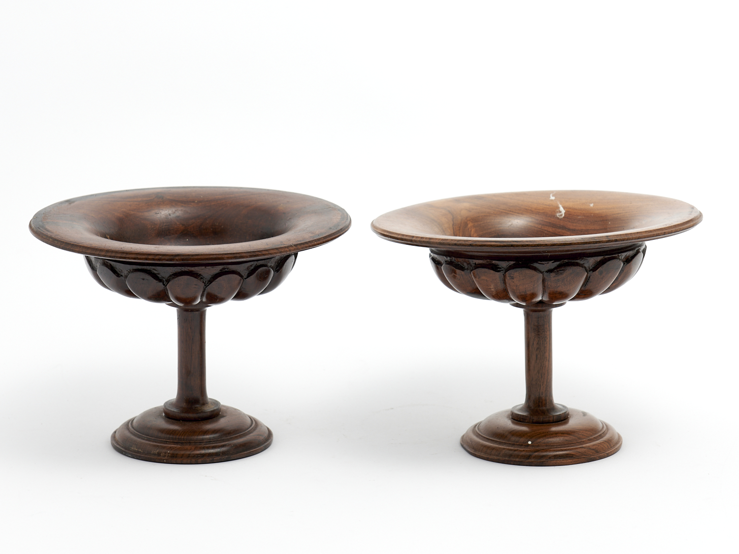 A PAIR OF TURNED ROSEWOOD TAZZE H.18CM, LEONARD JOEL DELIVERY SIZE: MEDIUM