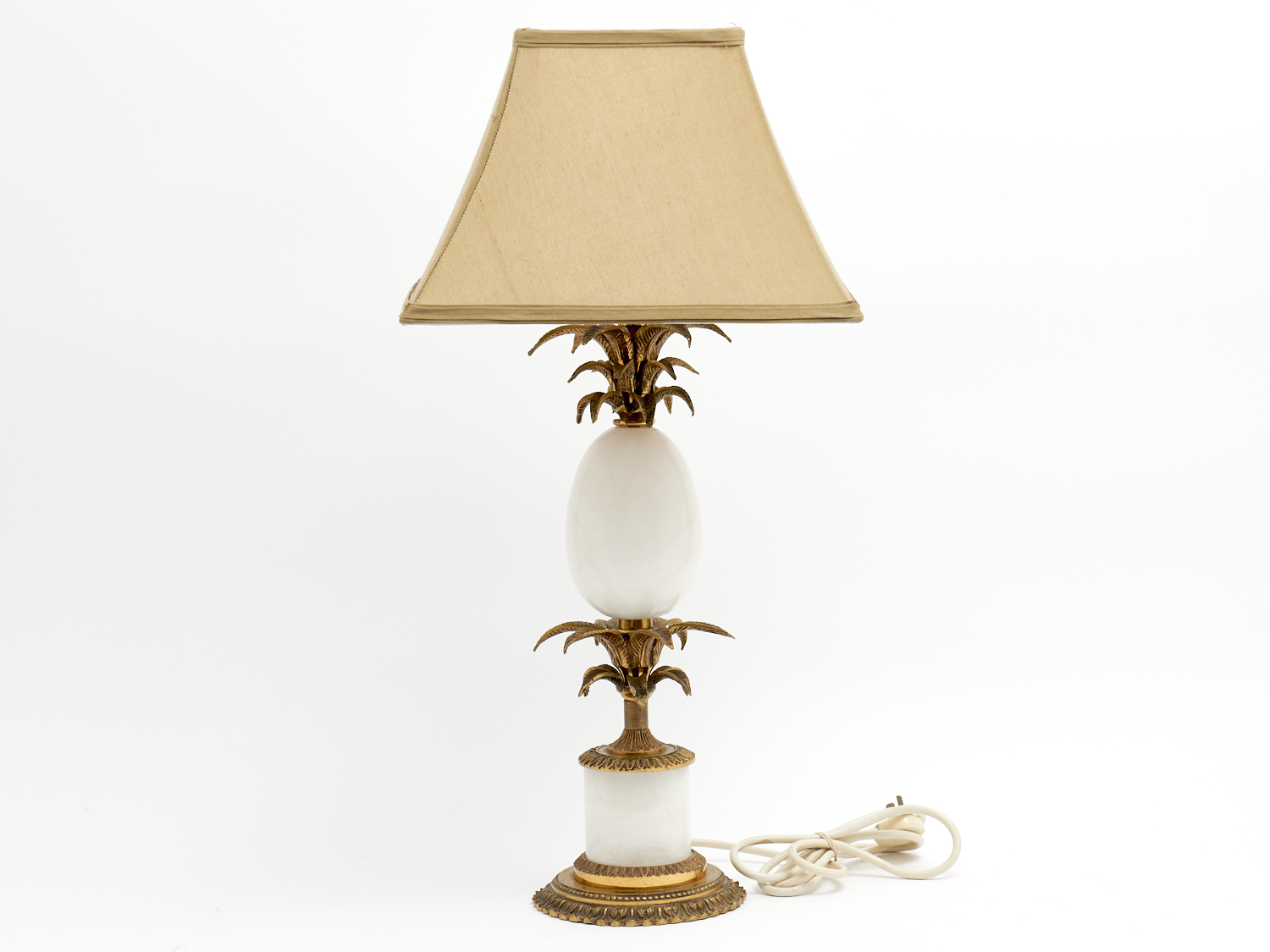 A VINTAGE GILDED BRASS AND MARBLE TABLE LAMP WITH PINEAPPLE FORM BASE H.56CM, LEONARD JOEL DELIVERY SIZE: MEDIUM
