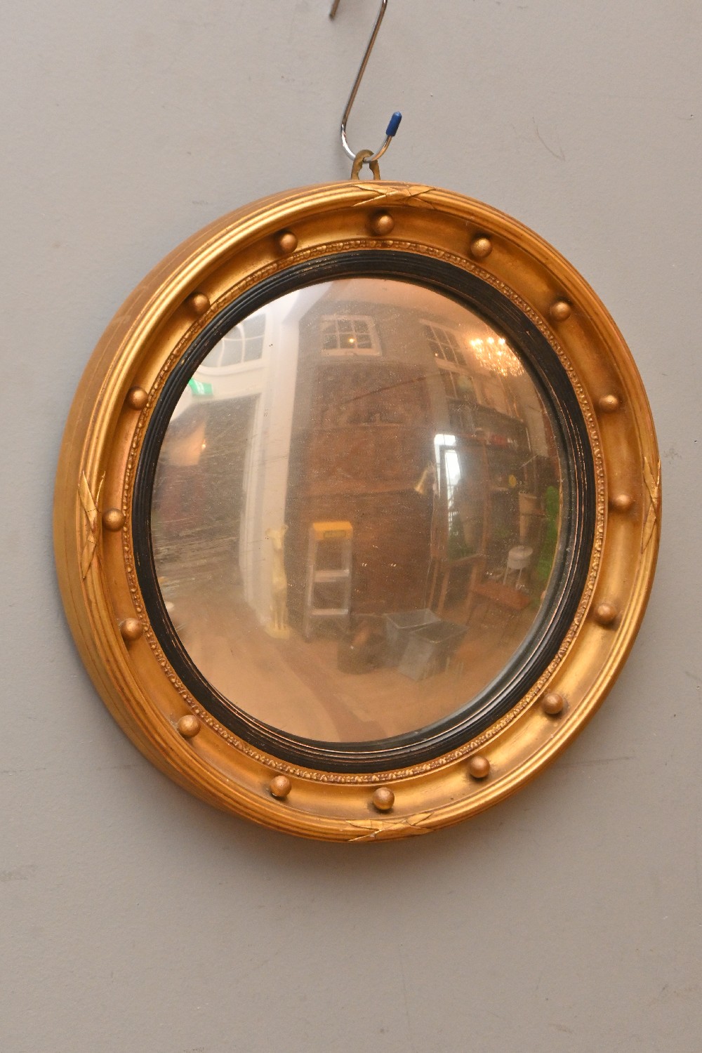 A GEORGE IV-STYLE GILT-FRAMED CONVEX MIRROR (A/F) (40D CM) (LEONARD JOEL DELIVERY SIZE: MEDIUM)