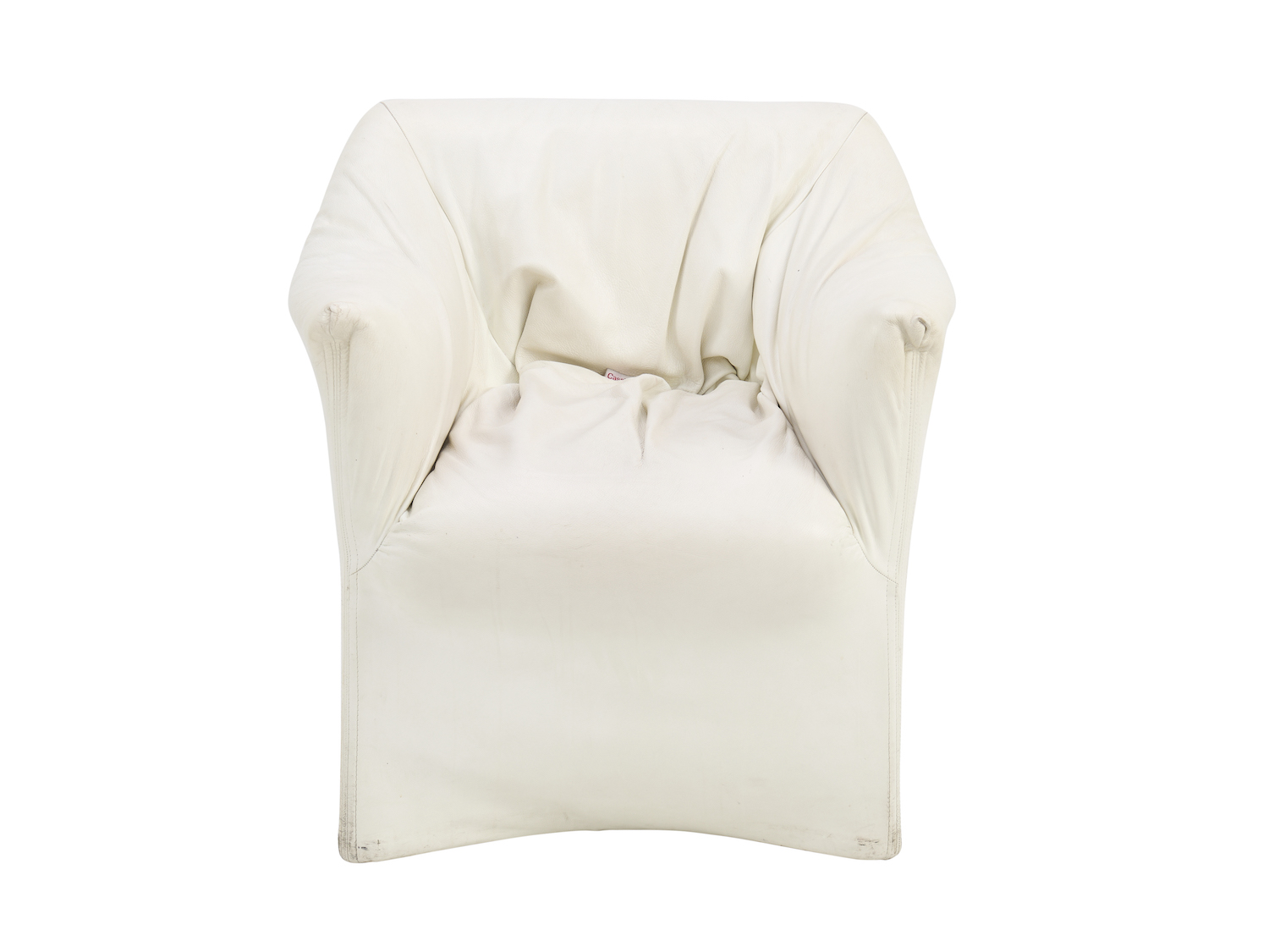White leather over steel frame with plastic base and castors. Cassina tag present.