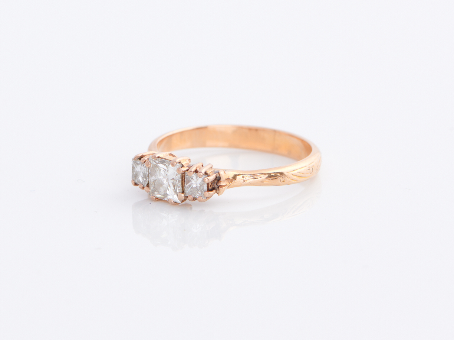 A THREE STONE DIAMOND RING IN 18CT GOLD, SIZE P, 3.5GMS