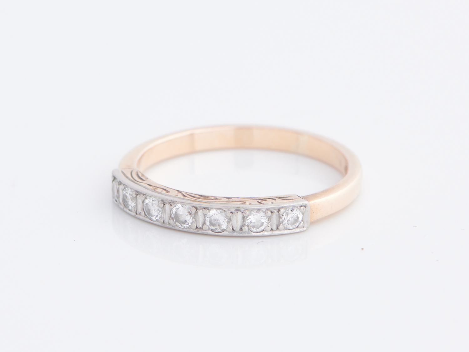 A DIAMOND SET HALF HOOP RING IN 14CT GOLD, SIZE P, 3.0GMS