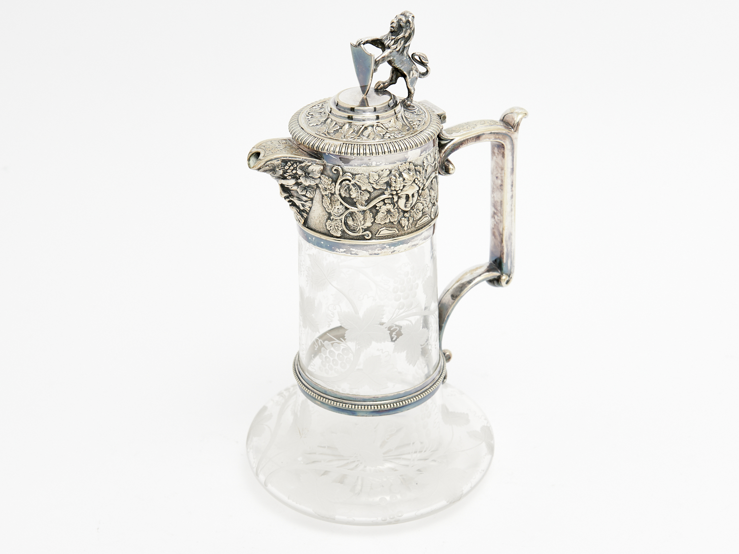 AN ELKINGTON SILVERPLATED AND ETCHED GLASS CLARET JUG H.27CM, LEONARD JOEL DELIVERY SIZE: SMALL