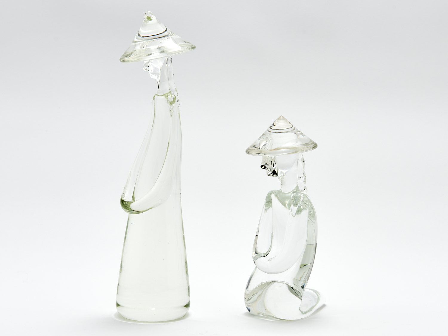 TWO ART GLASS CHINESE FIGURES 33.5CM (TALLEST), LEONARD JOEL DELIVERY SIZE: SMALL