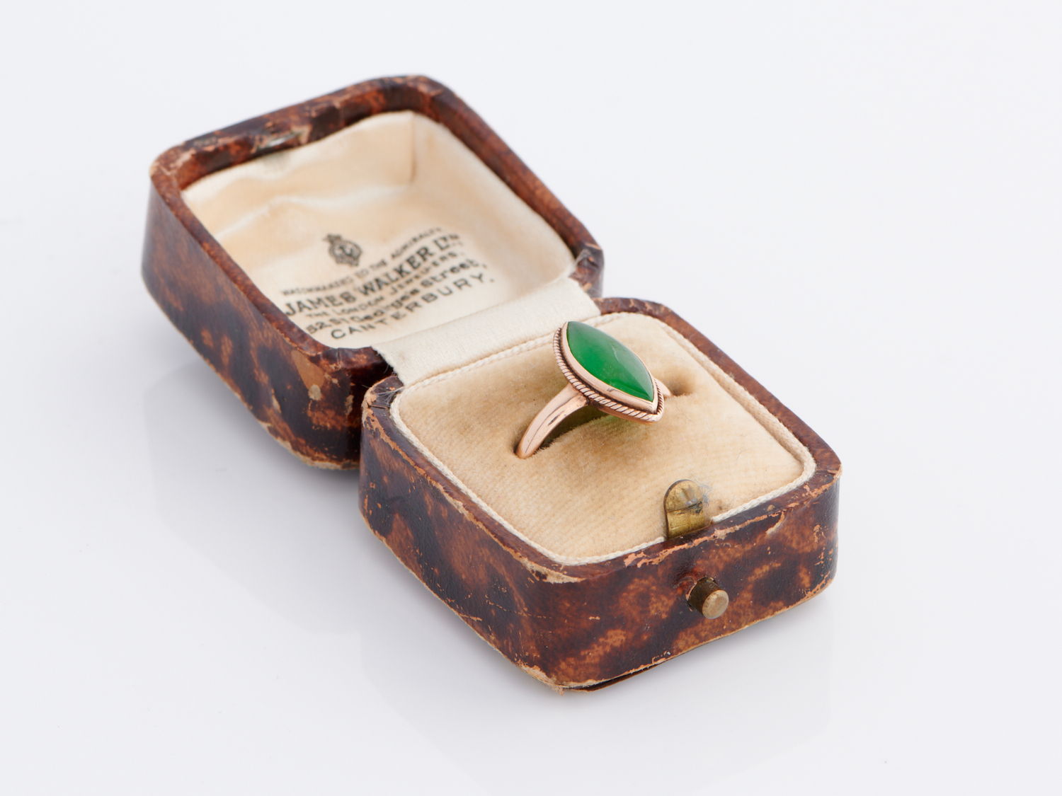 A JADE RING IN 9CT GOLD, RING SIZE N, 2.8GMS