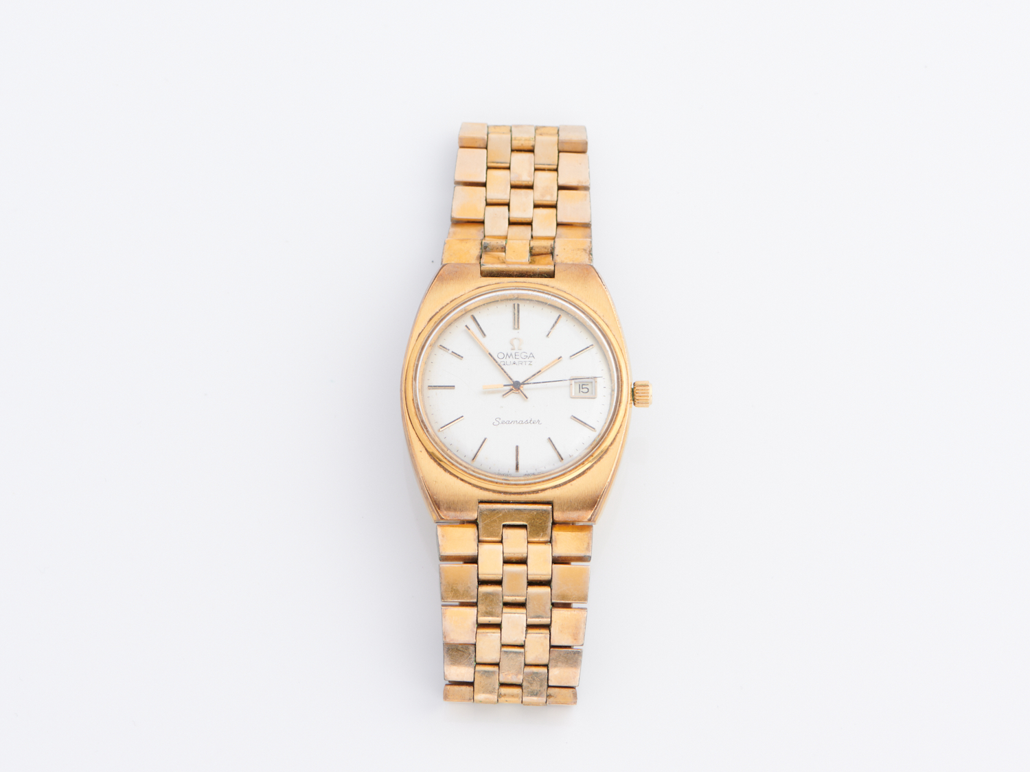 OMEGA, A SEAMASTER WRISTWATCH IN GOLD PLATED STAINLESS STEEL, WITH DATE APERTURE AT THREE, QUARTZ MOVEMENT