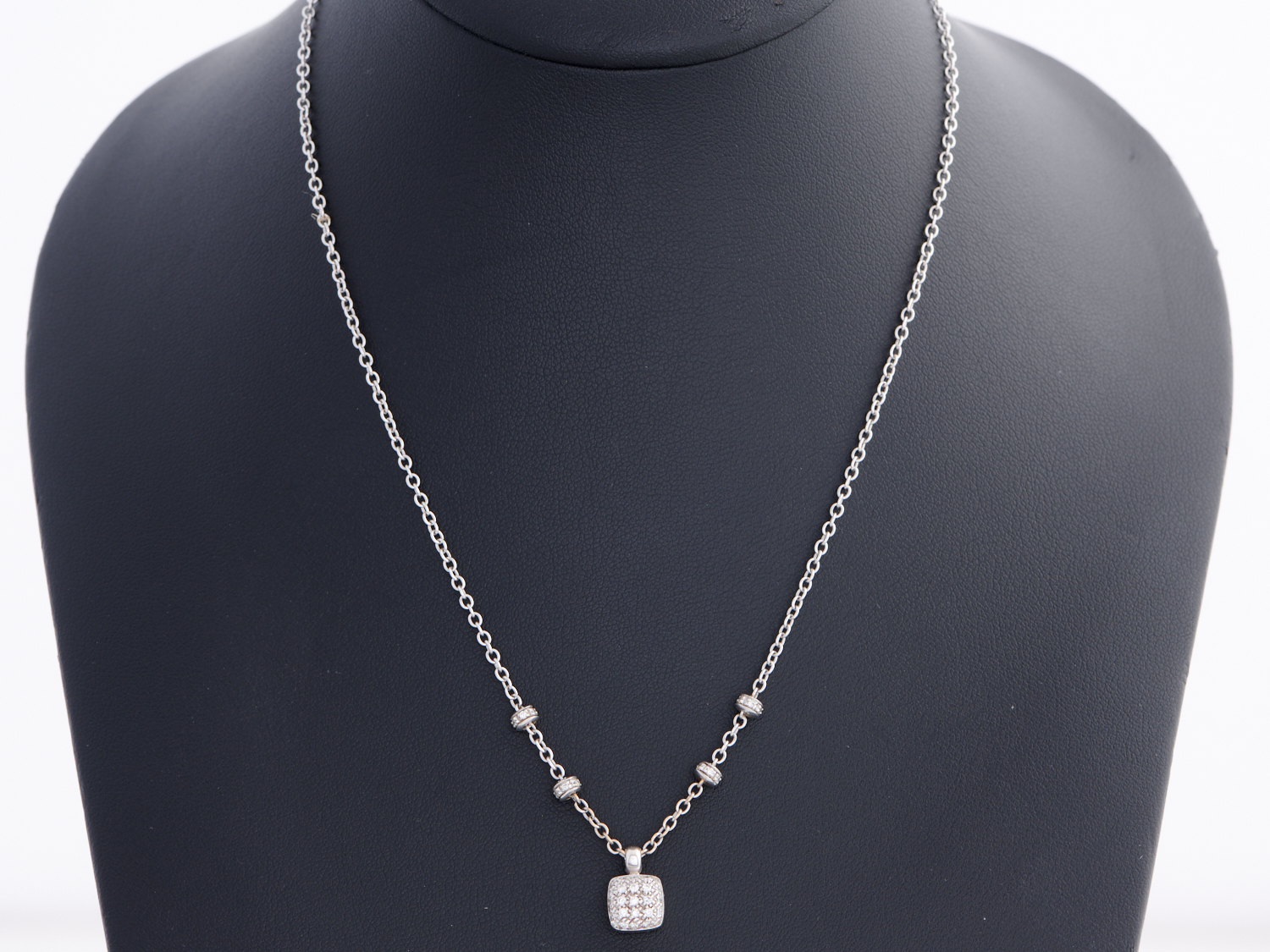 A DIAMOND NECKLACE IN 18CT WHITE GOLD, 400MM 6.6GMS