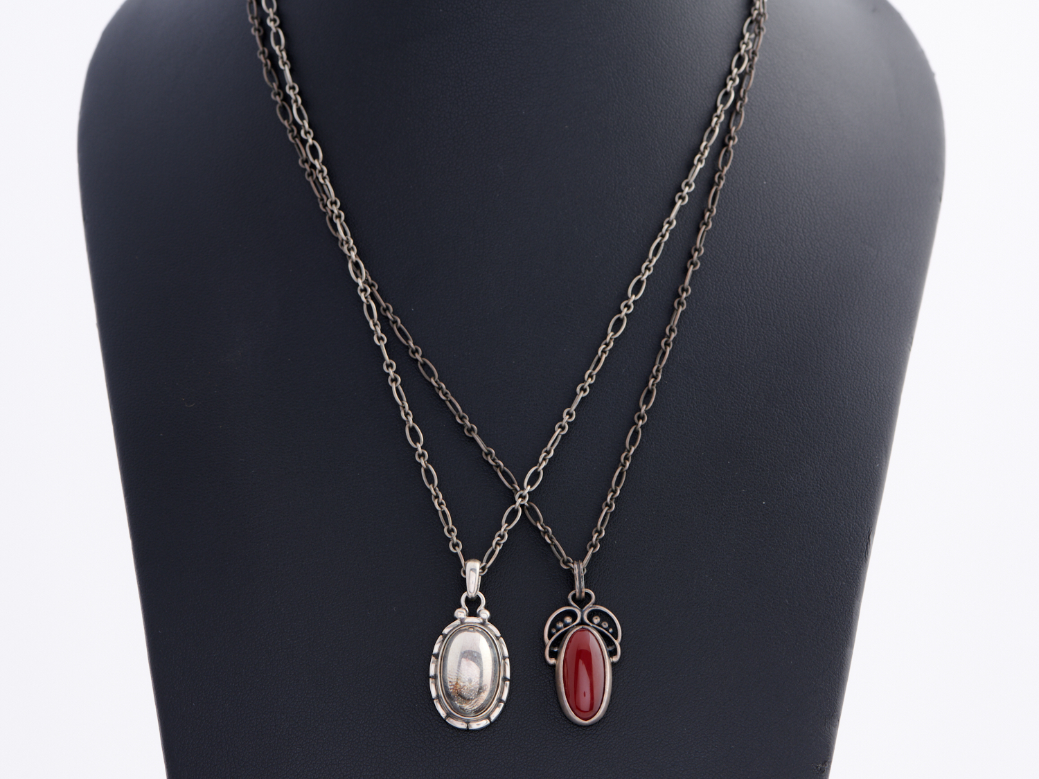 GEORG JENSEN, TWO VINTAGE PENDANT NECKLACES IN STERLING SILVER, ONE GEM SET, BOXED