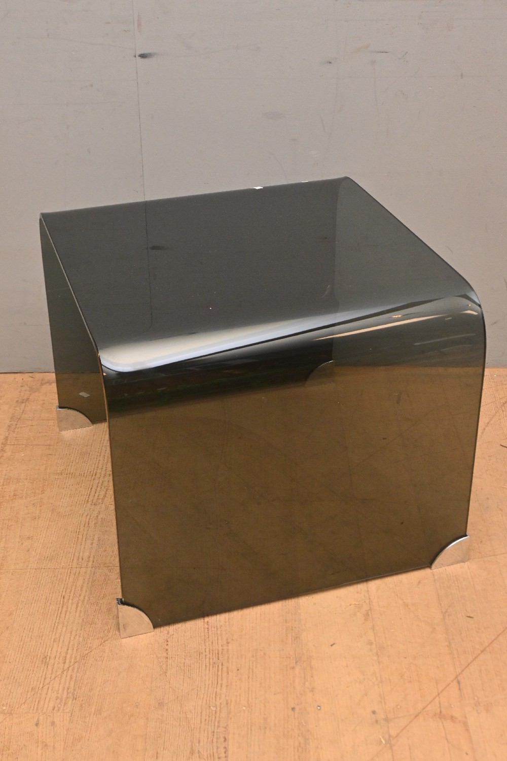 A CURVED SMOKED GLASS COFFEE TABLE (46H X 59W X 55D CM) (LEONARD JOEL DELIVERY SIZE: LARGE)