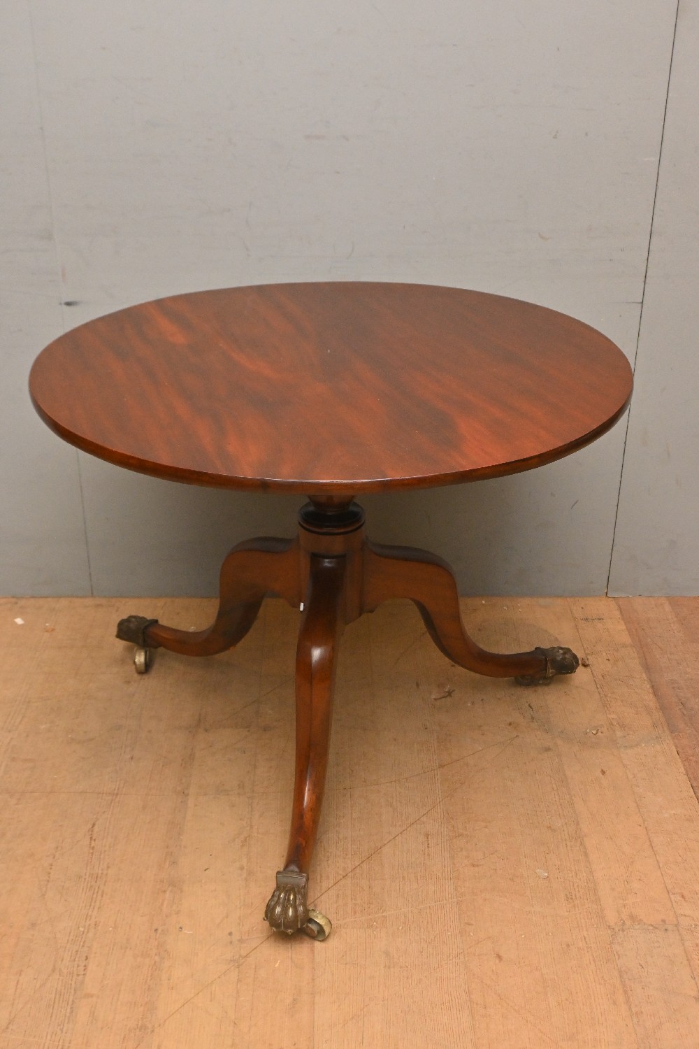 A MAHOGANY WINE TABLE ON CLAW FEET (71H X 90DIA CM) (LEONARD JOEL DELIVERY SIZE: X-LARGE)
