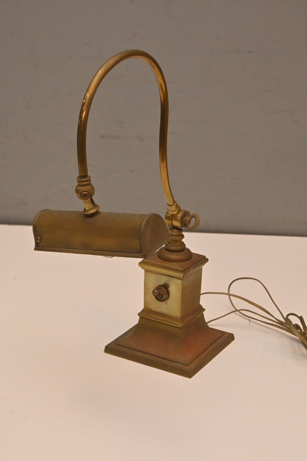 AN EARLY 20th CENTURY BRASS ADJUSTABLE DESK LAMP - NEEDS REWIRING (A/F) (40H CM) (LEONARD JOEL DELIVERY SIZE: MEDIUM)