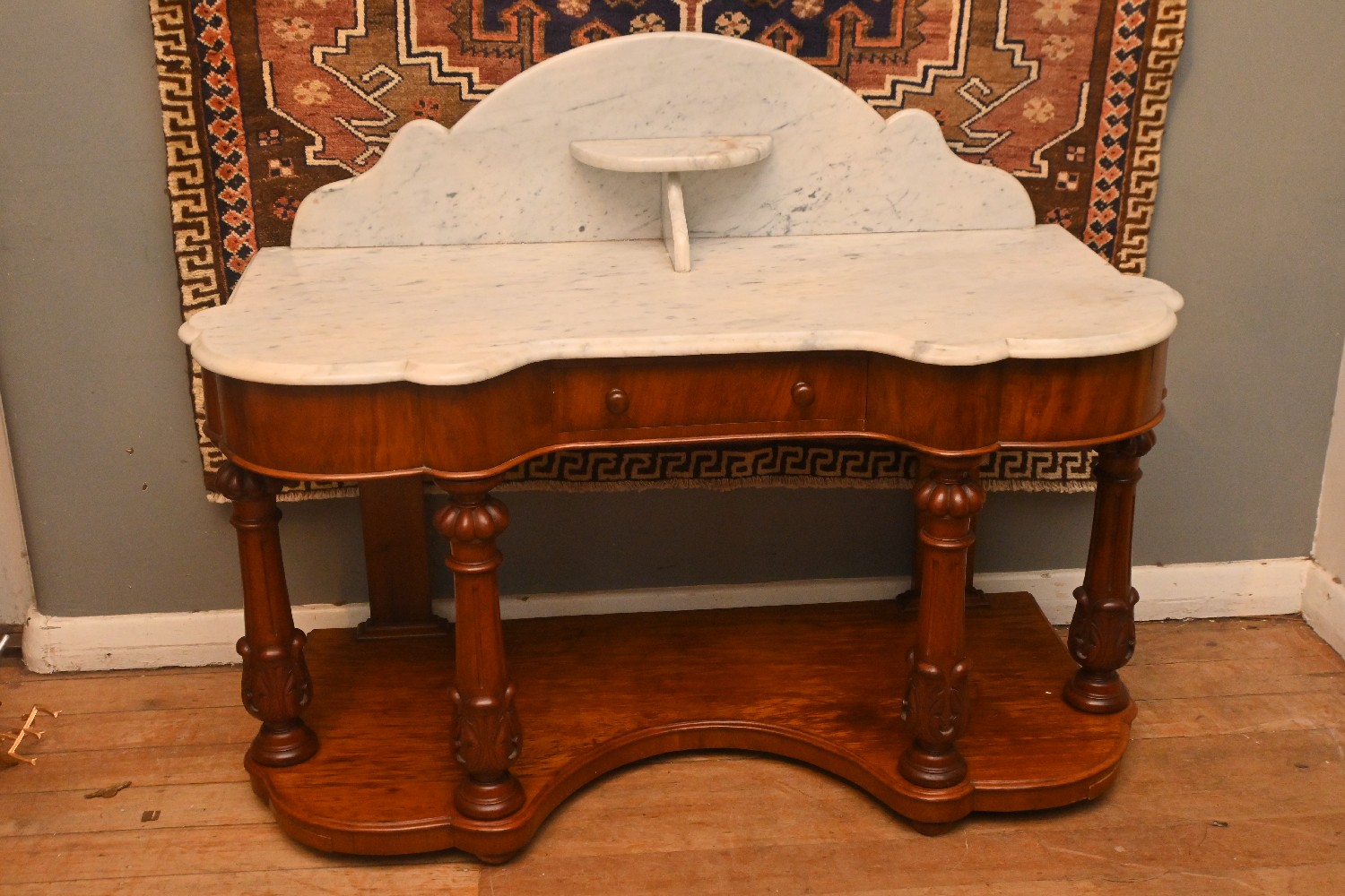 A VICTORIAN MARBLE TOPPED WASH STAND (97H X 134W X 60D CM) (PLEASE NOTE THIS HEAVY ITEM MUST BE REMOVED BY CARRIERS AT THE CUSTOMER'S EXPENSE. LEONARD JOEL STAFF CANNOT ASSIST CARRYING THIS ITEM) (LARGE ITEM)
