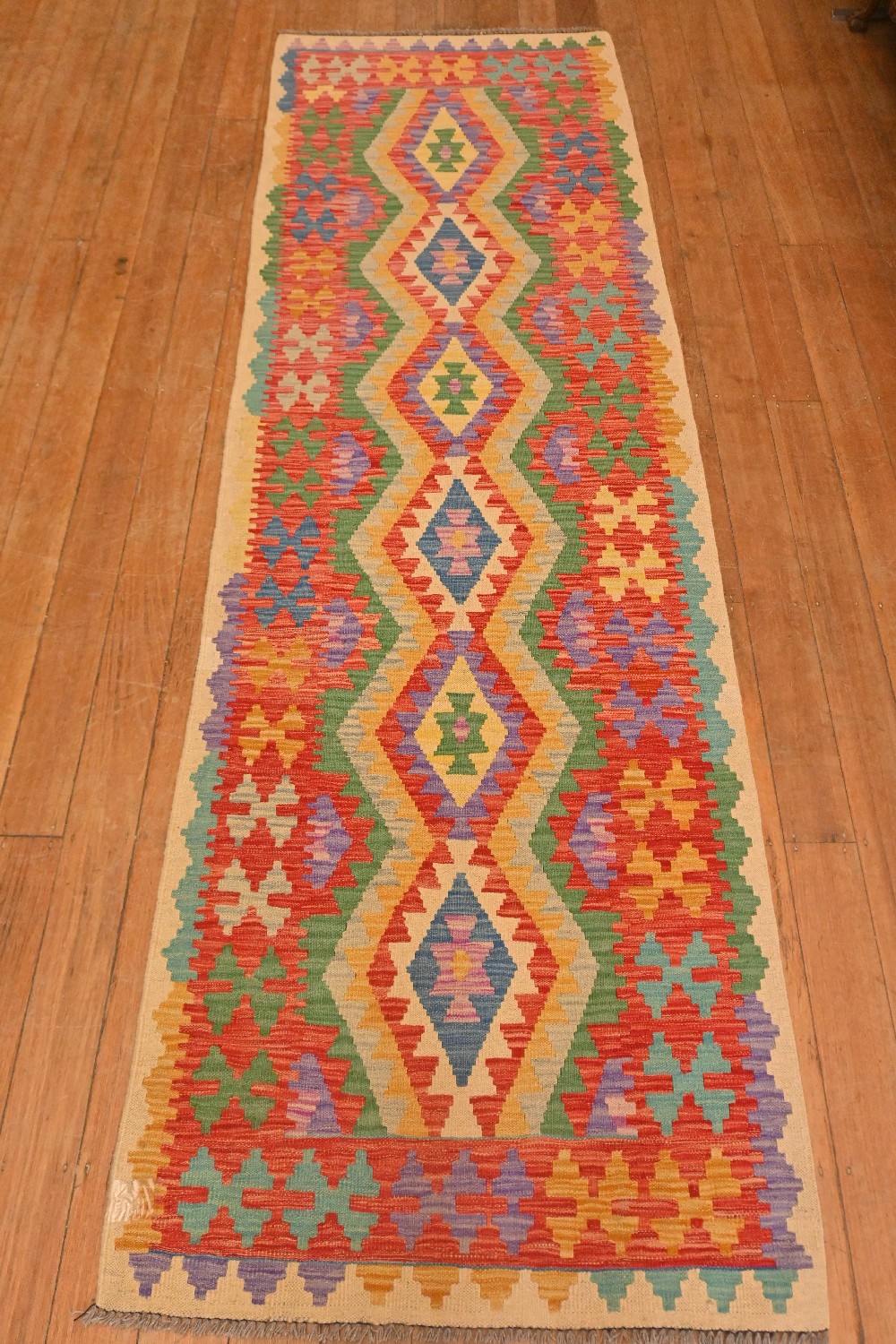 AN AFGAN KAZAK RUNNER IN CAUCASIAN DESIGN VEGETABLE DYES, 100% PURE WOOL, ALL HAND WOVEN, REVERSIBLE (288 X 88 CM) (LEONARD JOEL DELIVERY SIZE: MEDIUM)