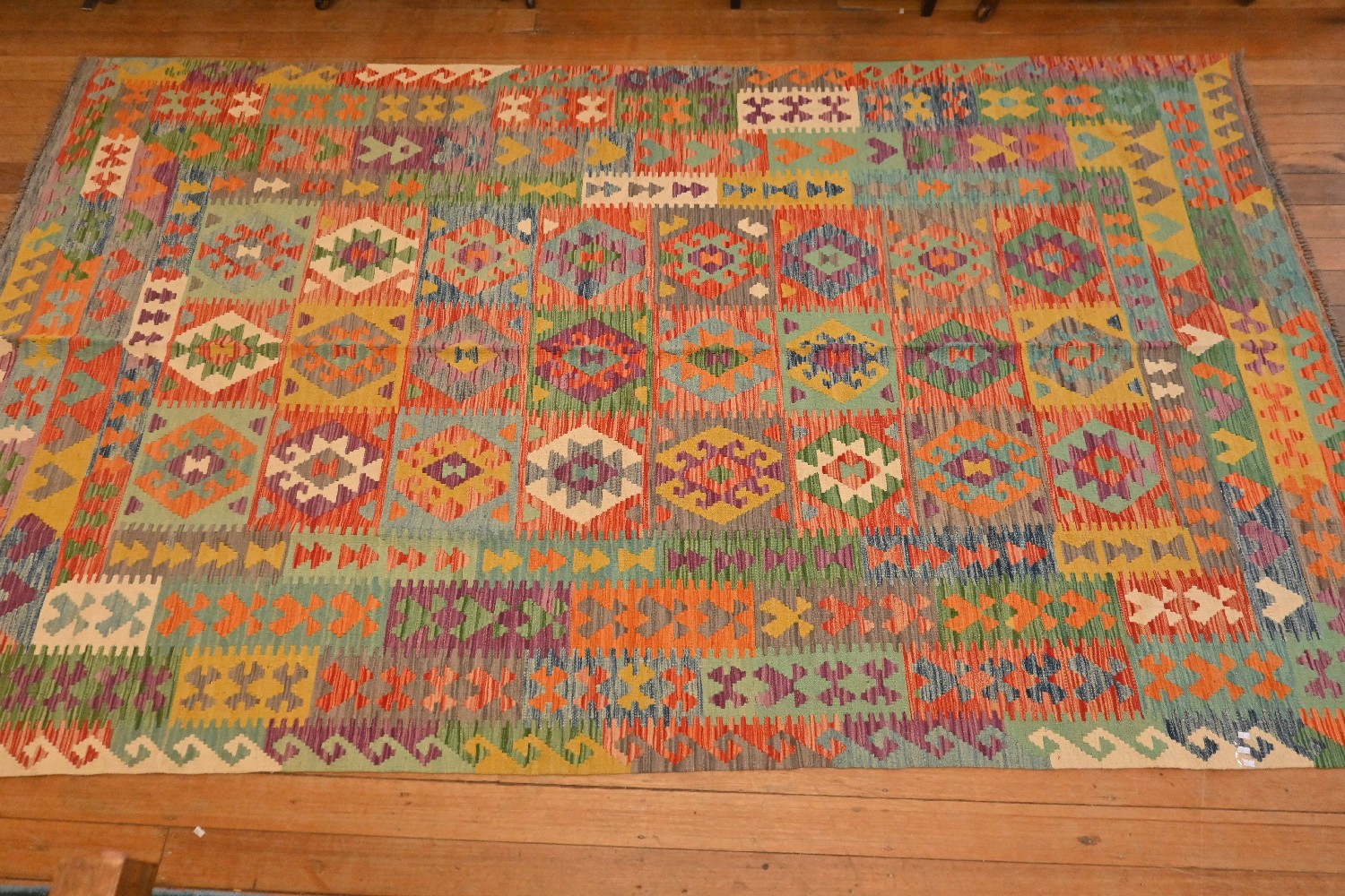 AN AFGAN KAZAK KILIM IN CAUCASIAN DESIGN VEGETABLE DYES, 100% PURE WOOL, ALL HAND WOVEN, REVERSIBLE (347 X 199 CM) (LEONARD JOEL DELIVERY SIZE: LARGE)