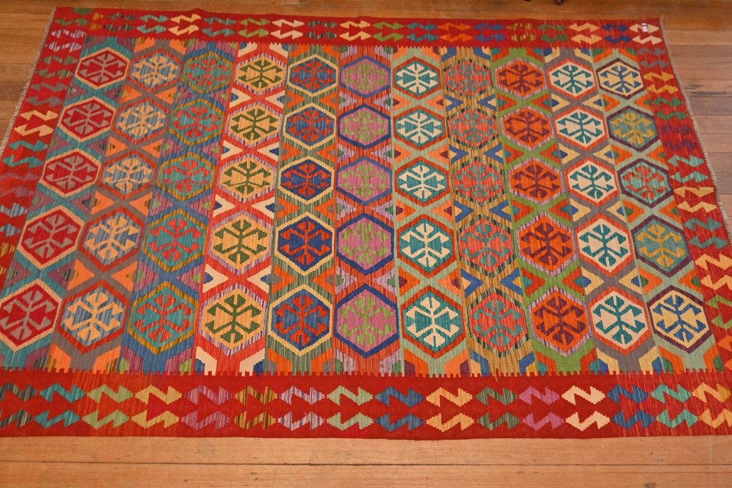 AN AFGAN KAZAK KILIM IN CAUCASIAN DESIGN VEGETABLE DYES, 100% PURE WOOL, ALL HAND WOVEN, REVERSIBLE (310 X 202 CM) (LEONARD JOEL DELIVERY SIZE: LARGE)