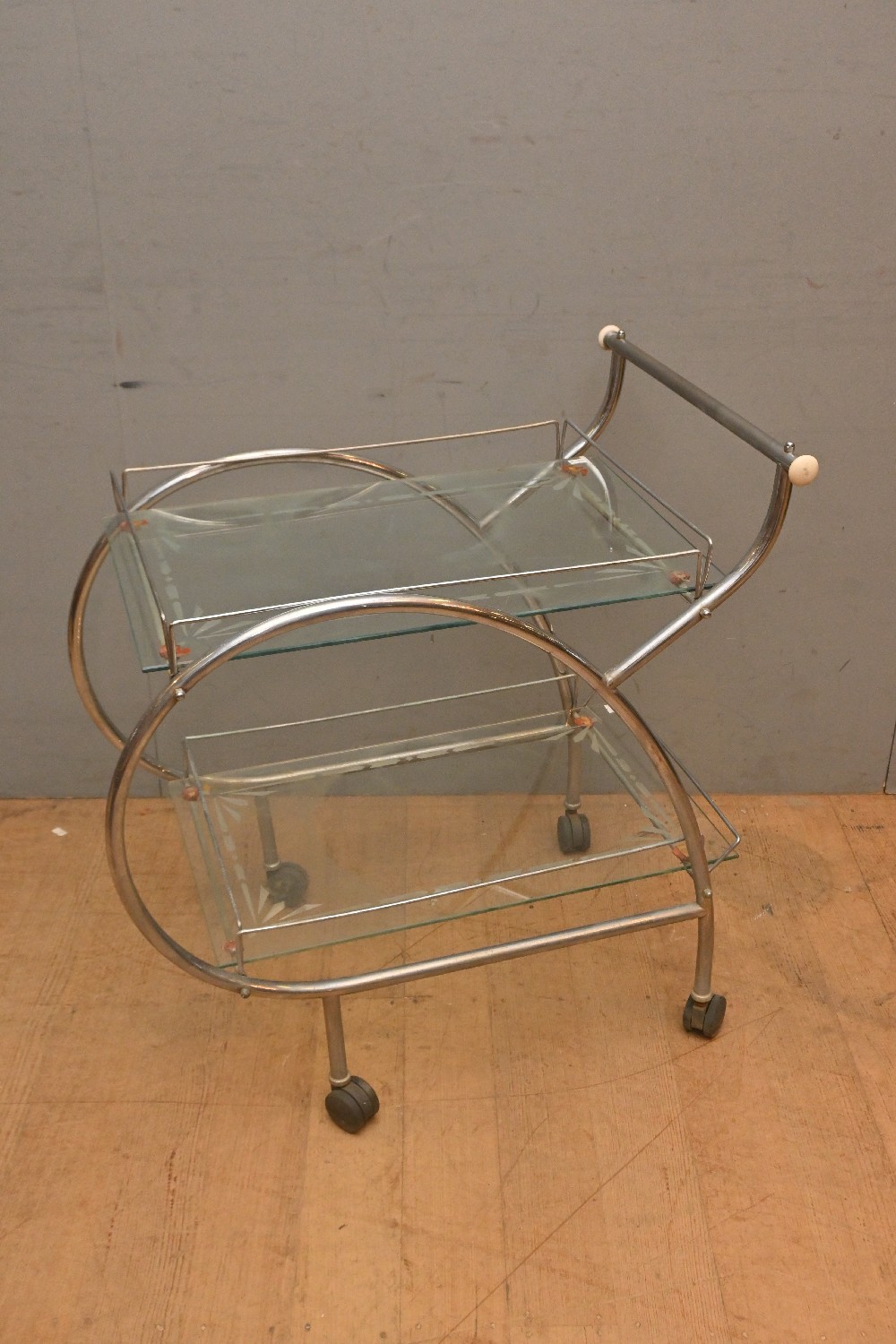 AN ART DECO TWO TIER CHROME & GLASS AUTO TROLLEY (A/F) (75H X 44W X 74D CM) (LEONARD JOEL DELIVERY SIZE: X-LARGE)