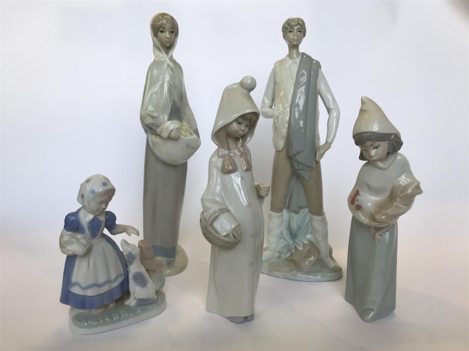 A GROUP OF FIVE LLADRO FIGURES, TWO IN THEIR ORIGINAL BOXES H.27CM (TALLEST), LEONARD JOEL DELIVERY SIZE: MEDIUM