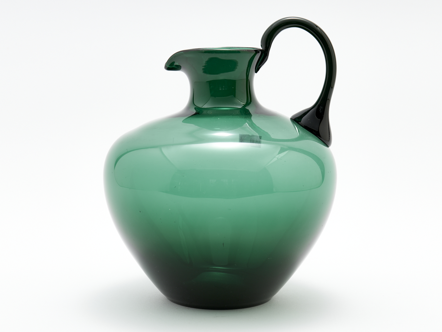 A HAND-BLOWN ITALIAN EMERALD GREEN GLASS JUG H.26CM, LEONARD JOEL DELIVERY SIZE: SMALL