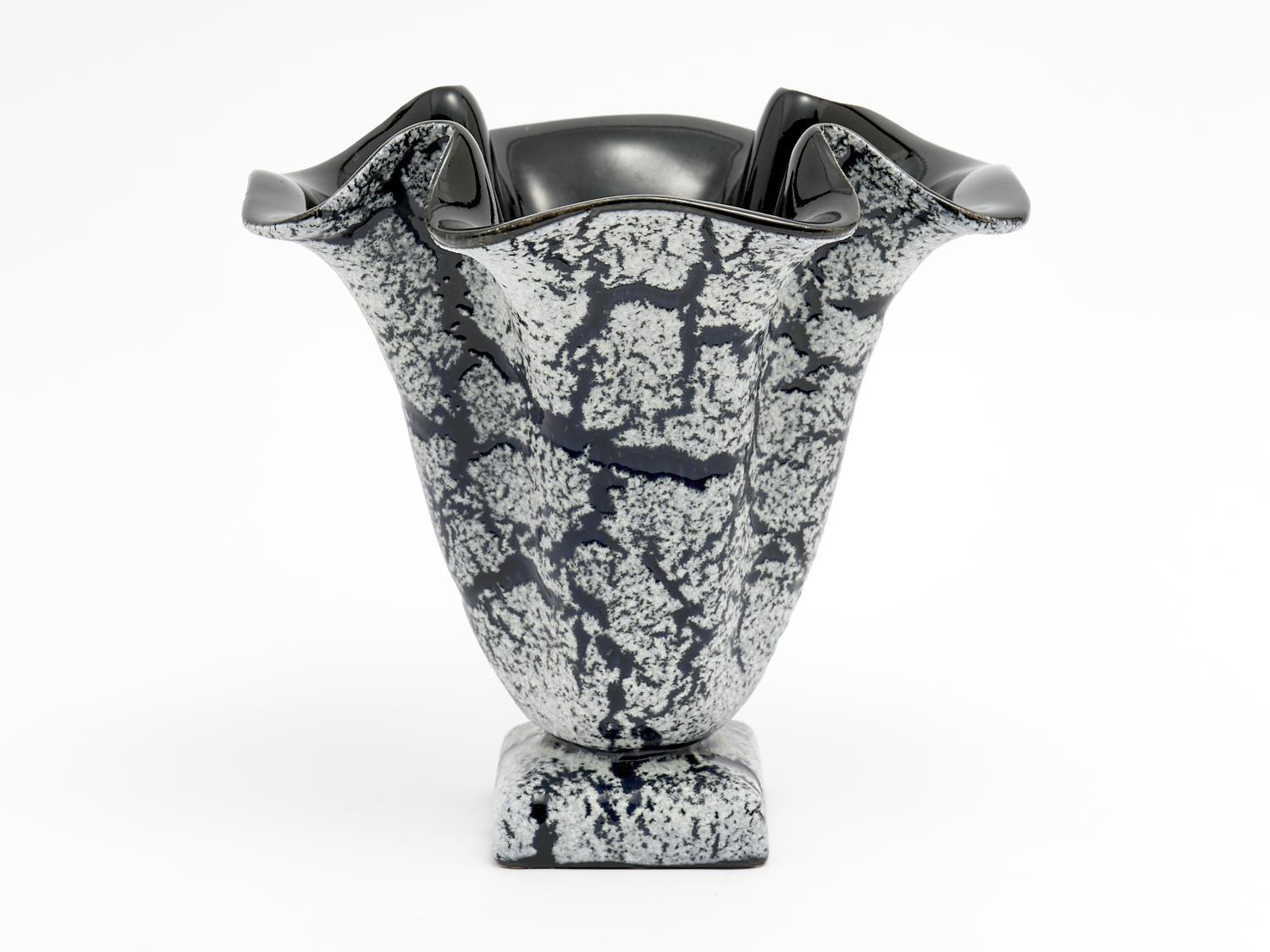 A MID-CENTURY AUSTRALIAN POTTERY VASE WITH RARE GLAZE BY HENNING RATHJEN H.22CM (A/F, SMALL REPAIR TO RIM), LEONARD JOEL DELIVERY SIZE: SMALL