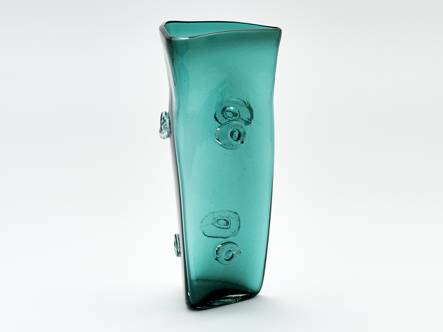 A LARGE HAND-MADE EMERALD GREEN GLASS VASE H.32CM, LEONARD JOEL DELIVERY SIZE: SMALL