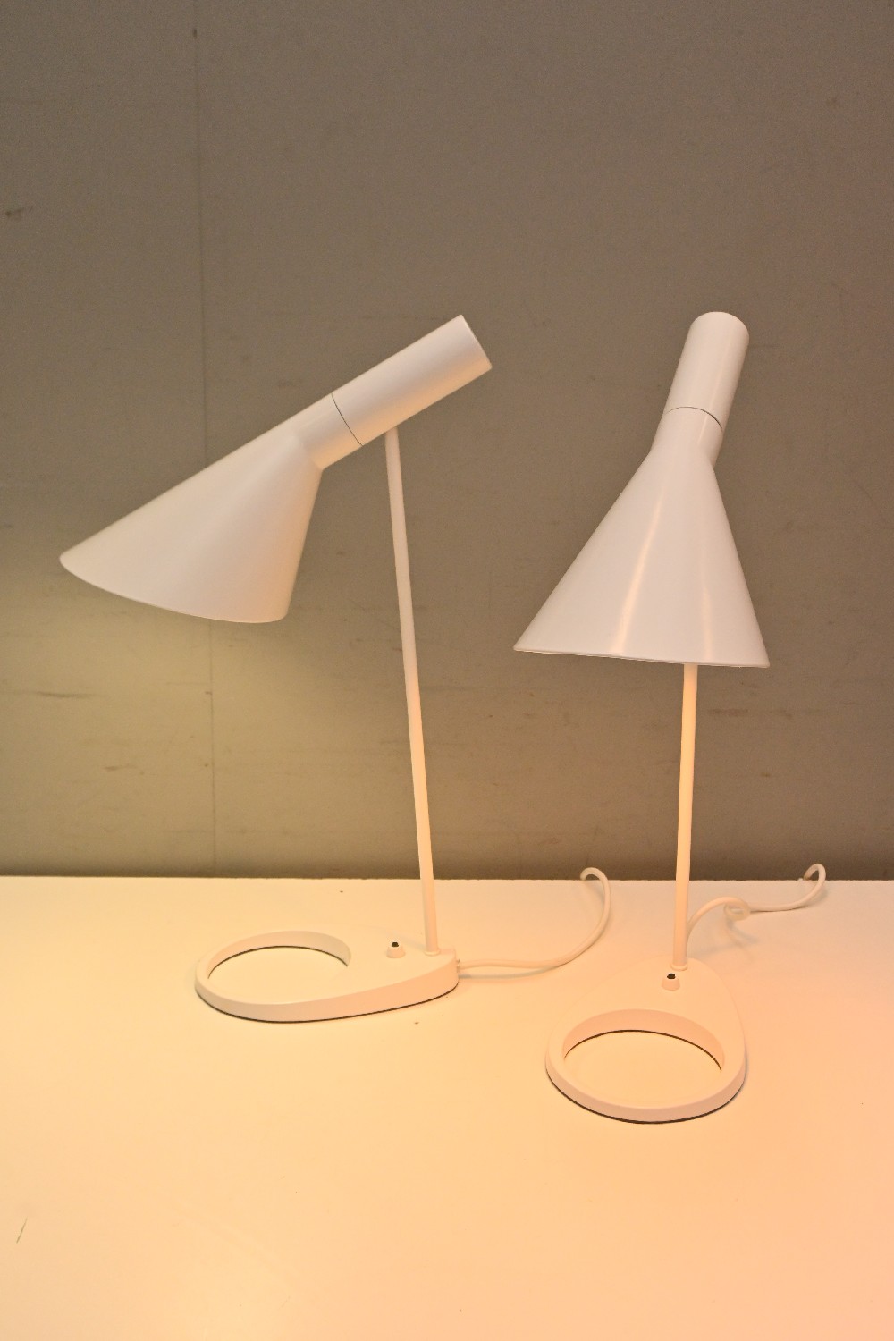 A PAIR OF METAL WHITE PAINTED TABLE LAMPS IN THE STYLE OF LOUIS POULSEN (55H CM) (LEONARD JOEL DELIVERY SIZE: MEDIUM)