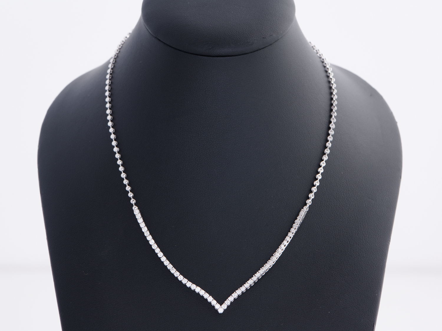 A DIAMOND NECKLACE IN 18CT WHITE GOLD, THE DIAMONDS TOTALLING 2.58CTS F-G/SI, ACCOMPANIED BY A VALUATION