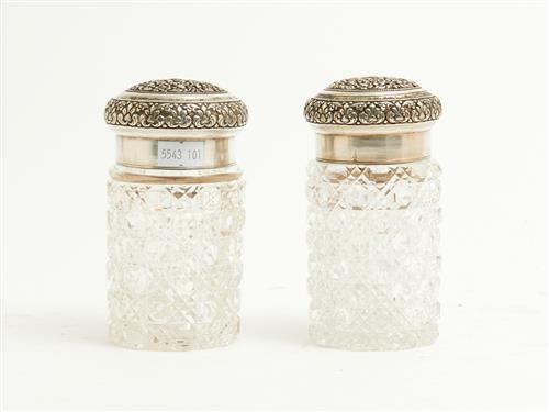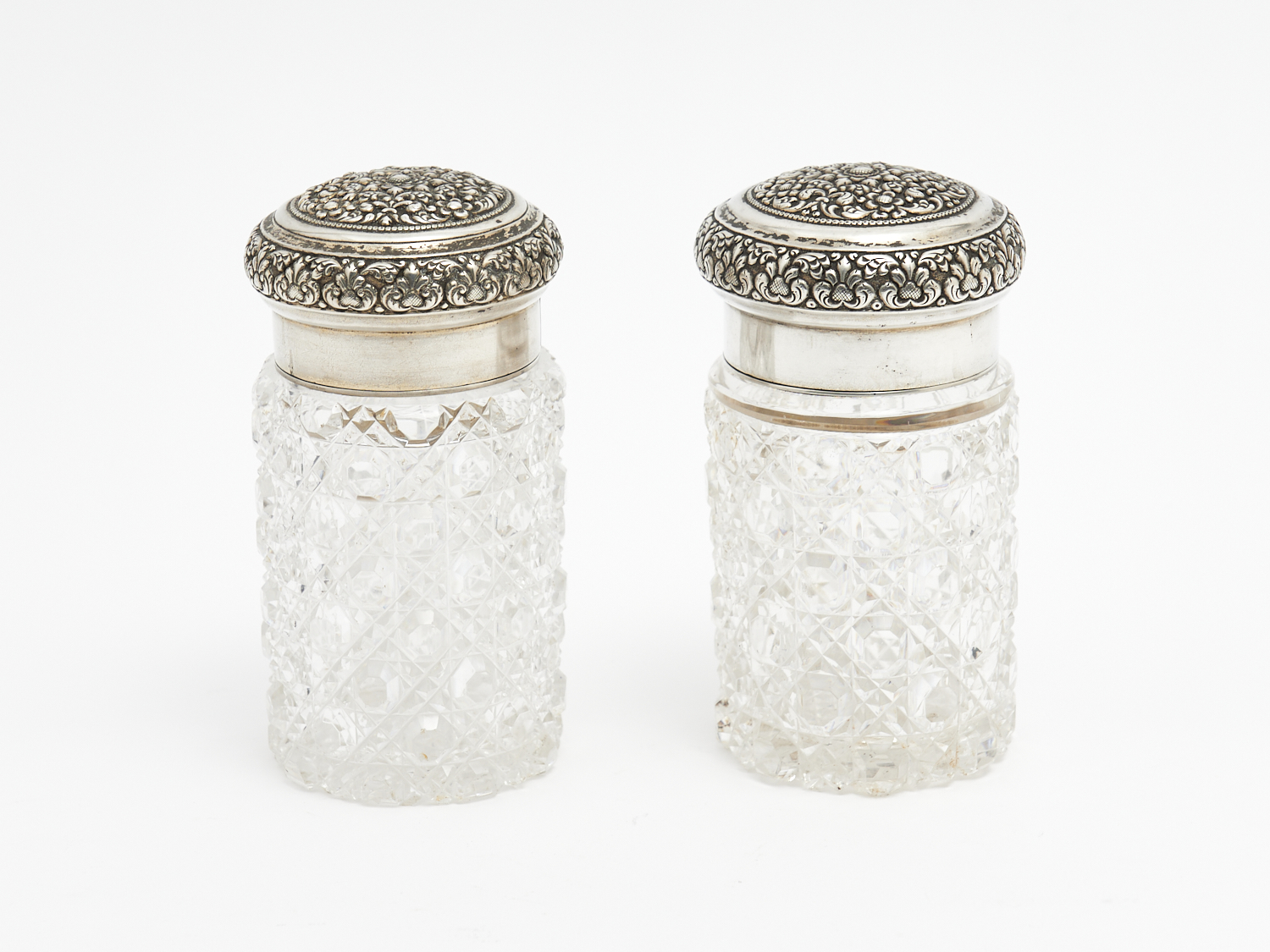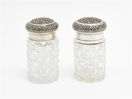 TWO 19TH CENTURY EUROPEAN STERLING SILVER TOPPED HOBNAIL CRYSTAL JARS H.13CM 176G (SILVER WEIGHT), LEONARD JOEL DELIVERY SIZE: SMALL