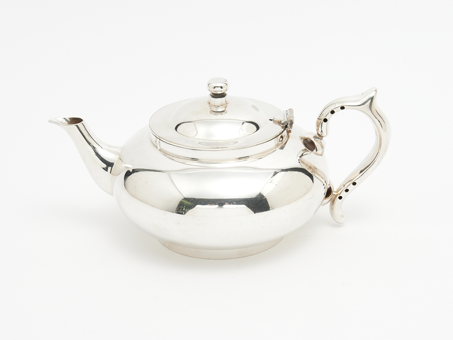 A SIX CUP SILVERPLATED ROBUR PERFECT TEAPOT WITH ORIGINAL INFUSER L.24.5CM, LEONARD JOEL LOCAL DELIVERY SIZE: SMALL