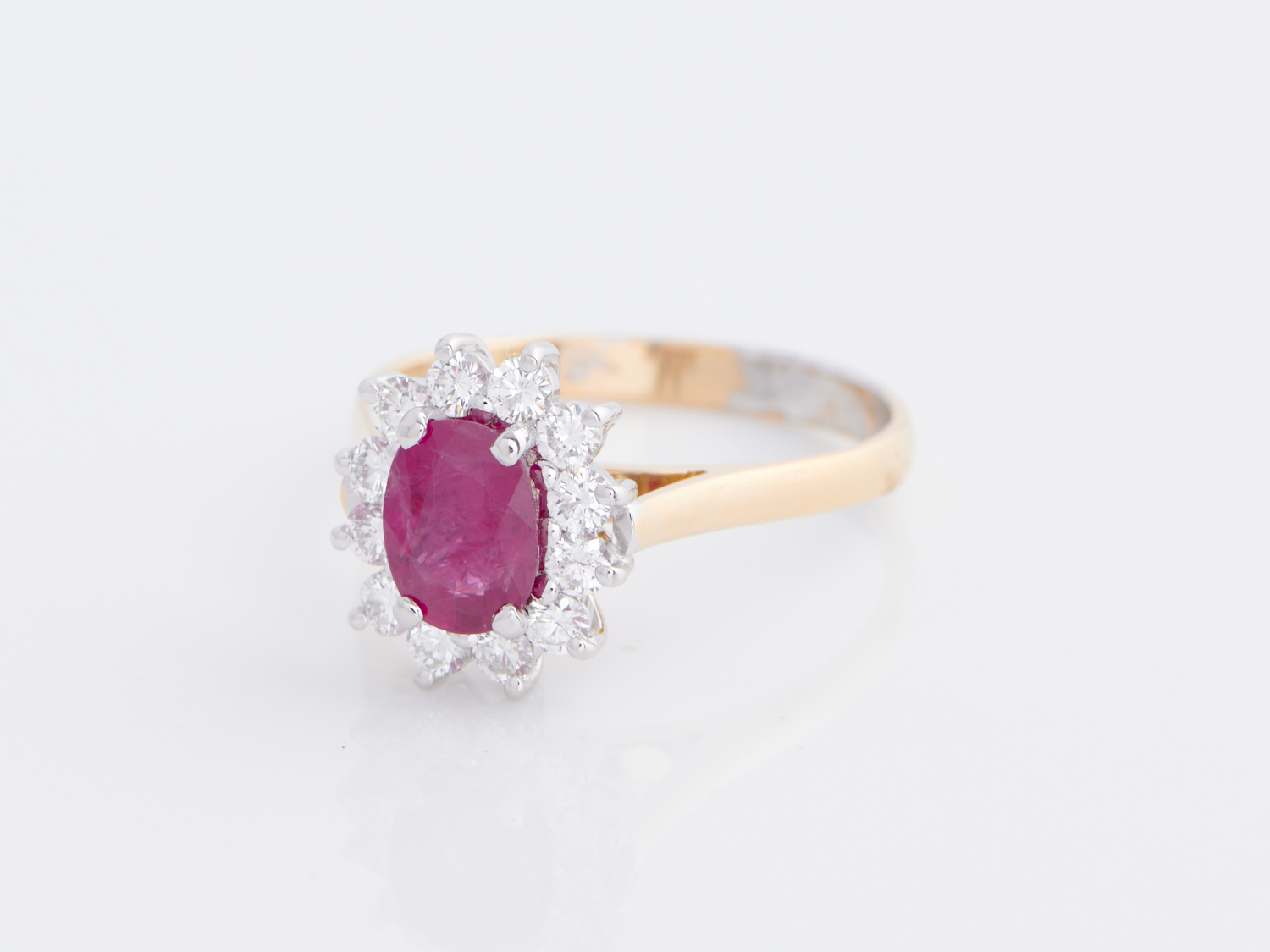 A MOZAMBIQUE RUBY AND DIAMOND RING IN 18CT TWO TONE GOLD, THE RUBY WEIGHING 1.04CTS, WITH DIAMONDS TOTALLING 0.42CTS, G/VS, SIZE O