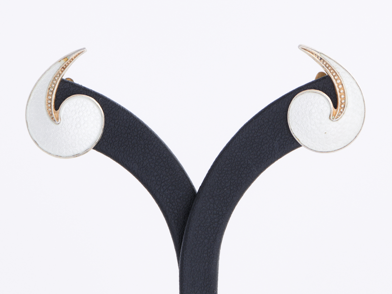 A PAIR OF NORWEGIAN ENAMEL EARRING IN SILVER GILT, TO CLIP ON FITTINGS