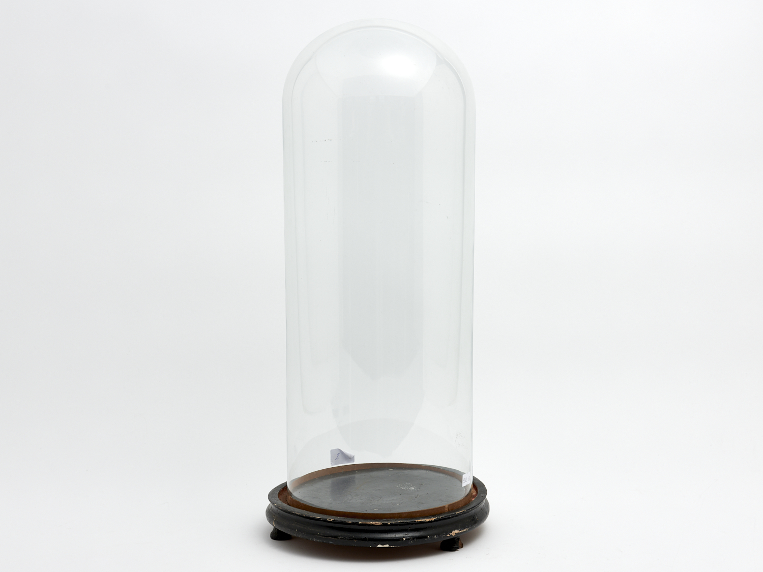 A 19TH CENTURY FRENCH GLASS DISPLAY DOME ON EBONISED WOODEN BASE H.52CM, LEONARD JOEL LOCAL DELIVERY SIZE: LARGE