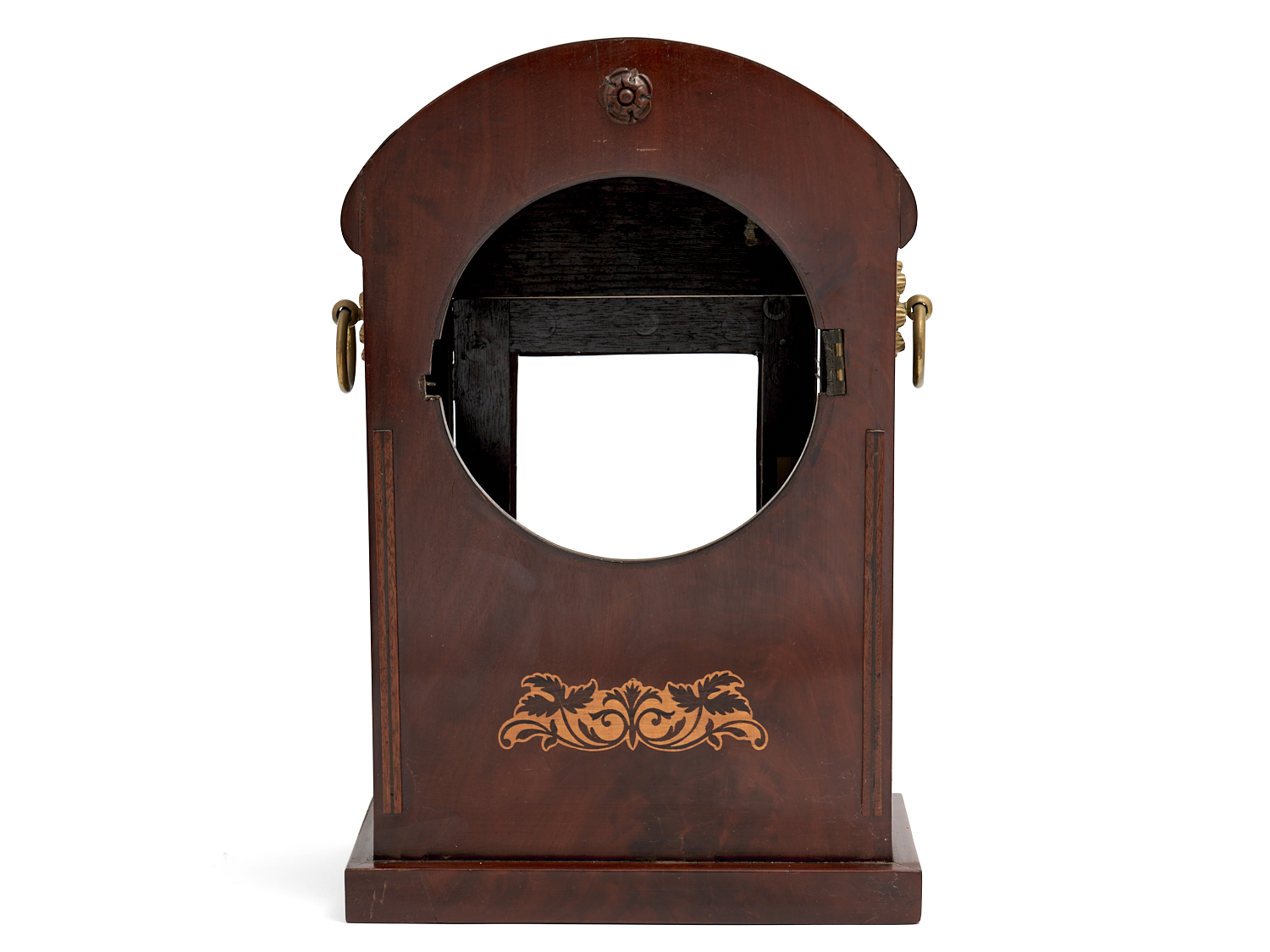 A LARGE 19TH CENTURY ENGLISH INLAID MAHOGANY CASED EMPIRE CLOCK CASE H.47CM, LEONARD JOEL LOCAL DELIVERY SIZE: SMALL