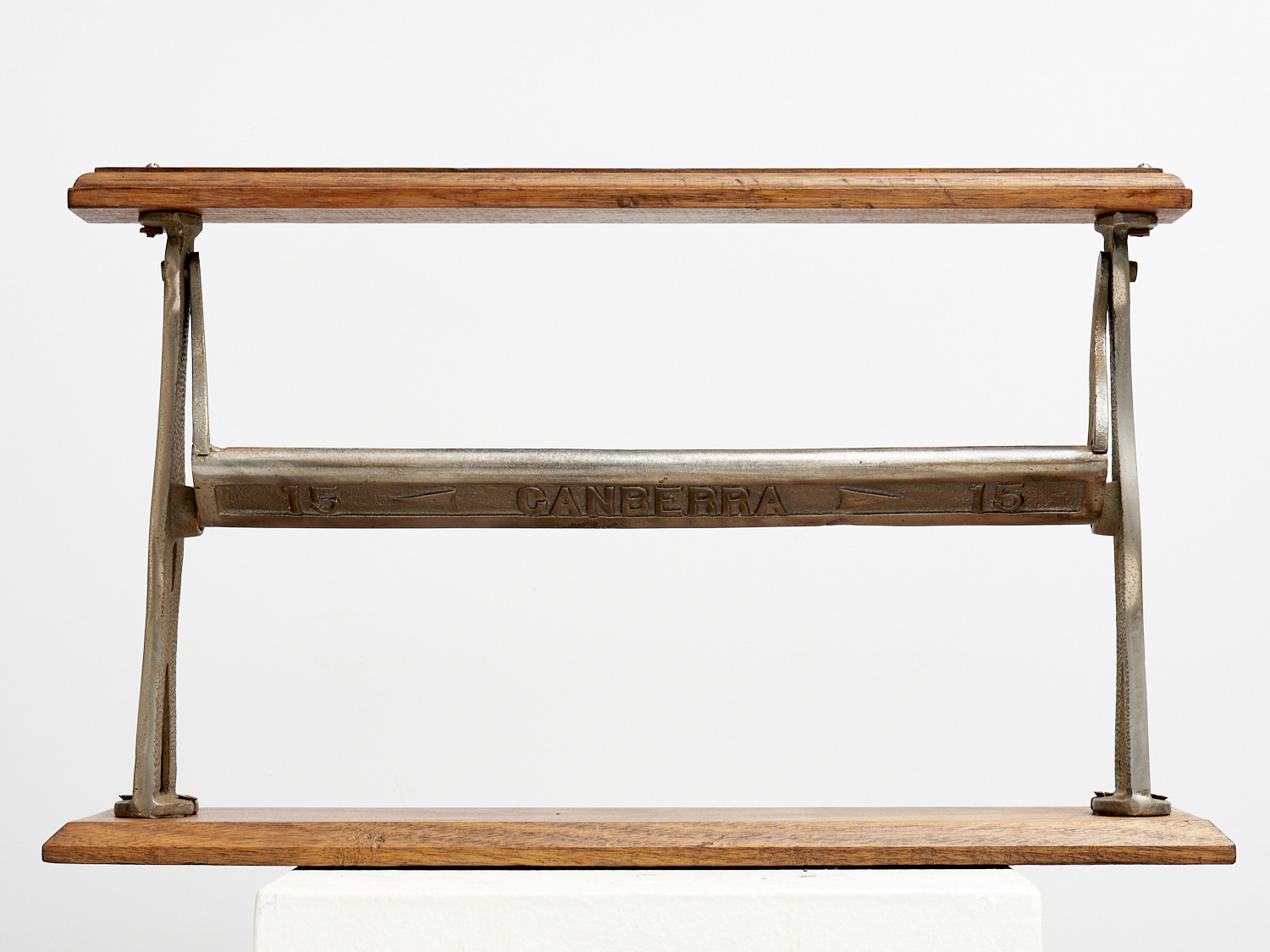 A VINTAGE WOODEN AND NICKEL PLATED CANBERRA 15 INCH SHOP COUNTER PAPER DISPENSER L.53CM, LEONARD JOEL LOCAL DELIVERY SIZE: MEDIUM